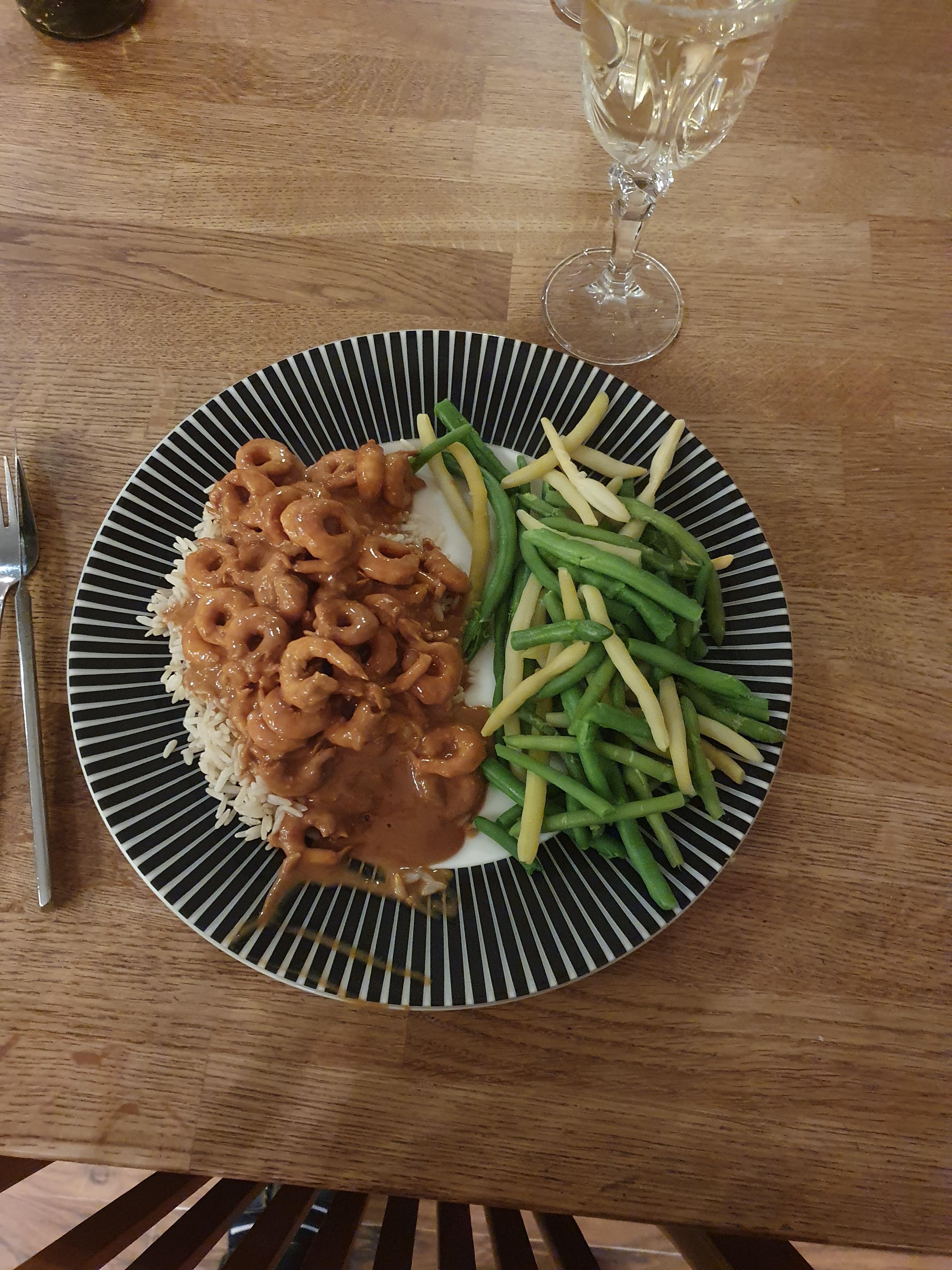 Publicerat Oktober 24, 20205 yr Detta är en populär post. Är både Dagens och Morgondagens som presenteras här. Vi börjar med gårdagens bravader. Porterstek av rådjur som fått kallna över natten i grytan och dragit åt sig alla goda smaker. Sen silat av skyn och och fixat såsen, tre omgångar i folieform för frysen och en i ungs form för morgondagens lunch. Kvällen dagens, var Heta räkor med ris, bönor och ett schyst vit vin. Hummmmm Vitt vin och Räkor, än finns det hopp?