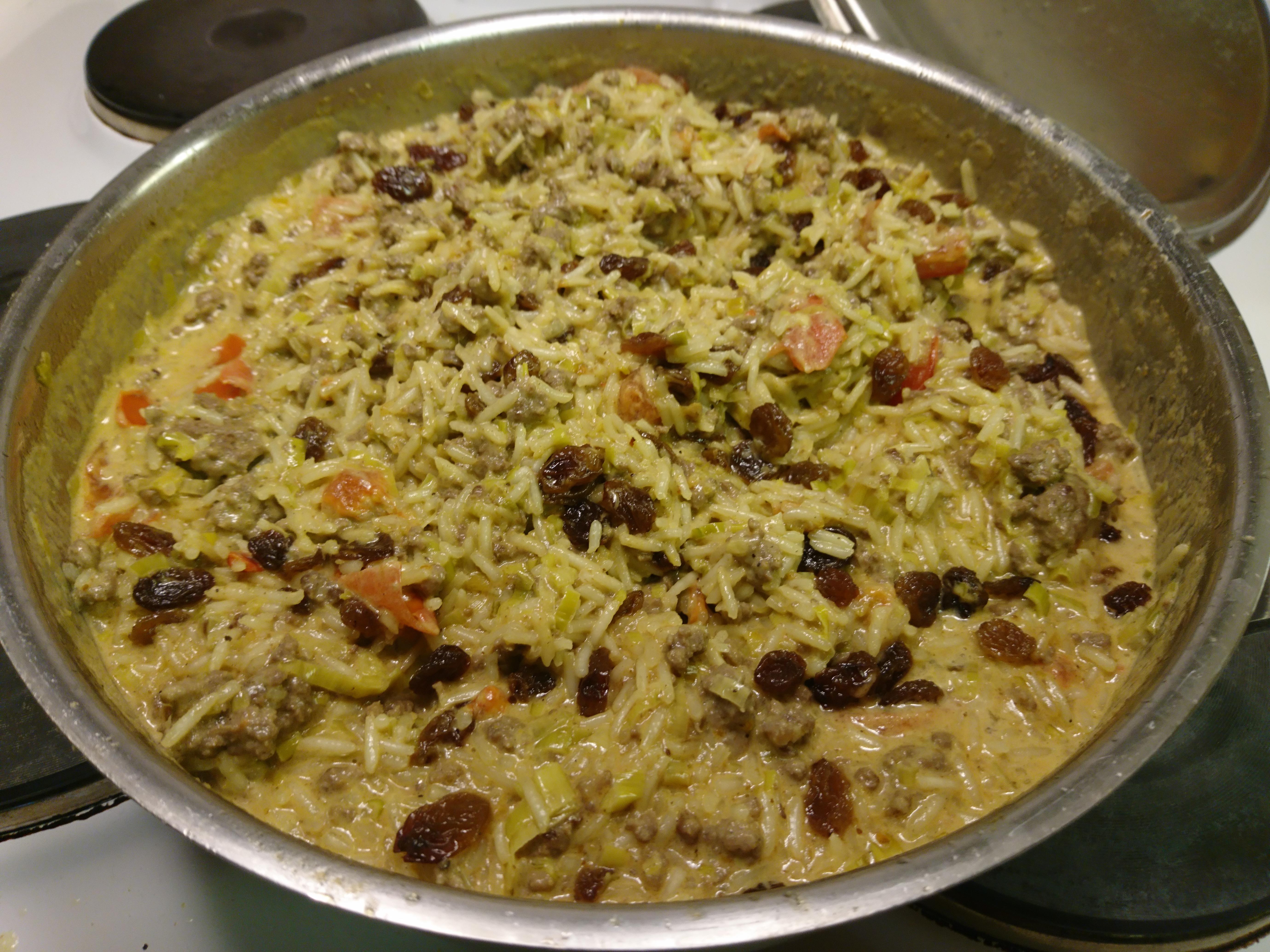 Publicerat November 2, 20205 yr All in one. Tog upp 5oogr råfärs å var lite vilsen vad det skulle bli. Enkelt var målet. Då blev de att köra allt i en potta. Så, ner mä färs å rejält med purjo + vitlök och tomat. Salt å peppar + lite kryddigare: curry+spiskummin+ingefära+kanel(lite)+Kabsa(mellanösternkryddblandning). Detta fick simma i creme fraiche å grädde. Avsmakning å i med lite h20 å sen ner med basmatiris. På med lock å sjud tills klart. Ner med dryga decilitern med russin, för å möta sälta å kryddor, som fick vara med i 5 min på eftervärmen. Kruxet är att komma ihåg. Blev bra. /P
