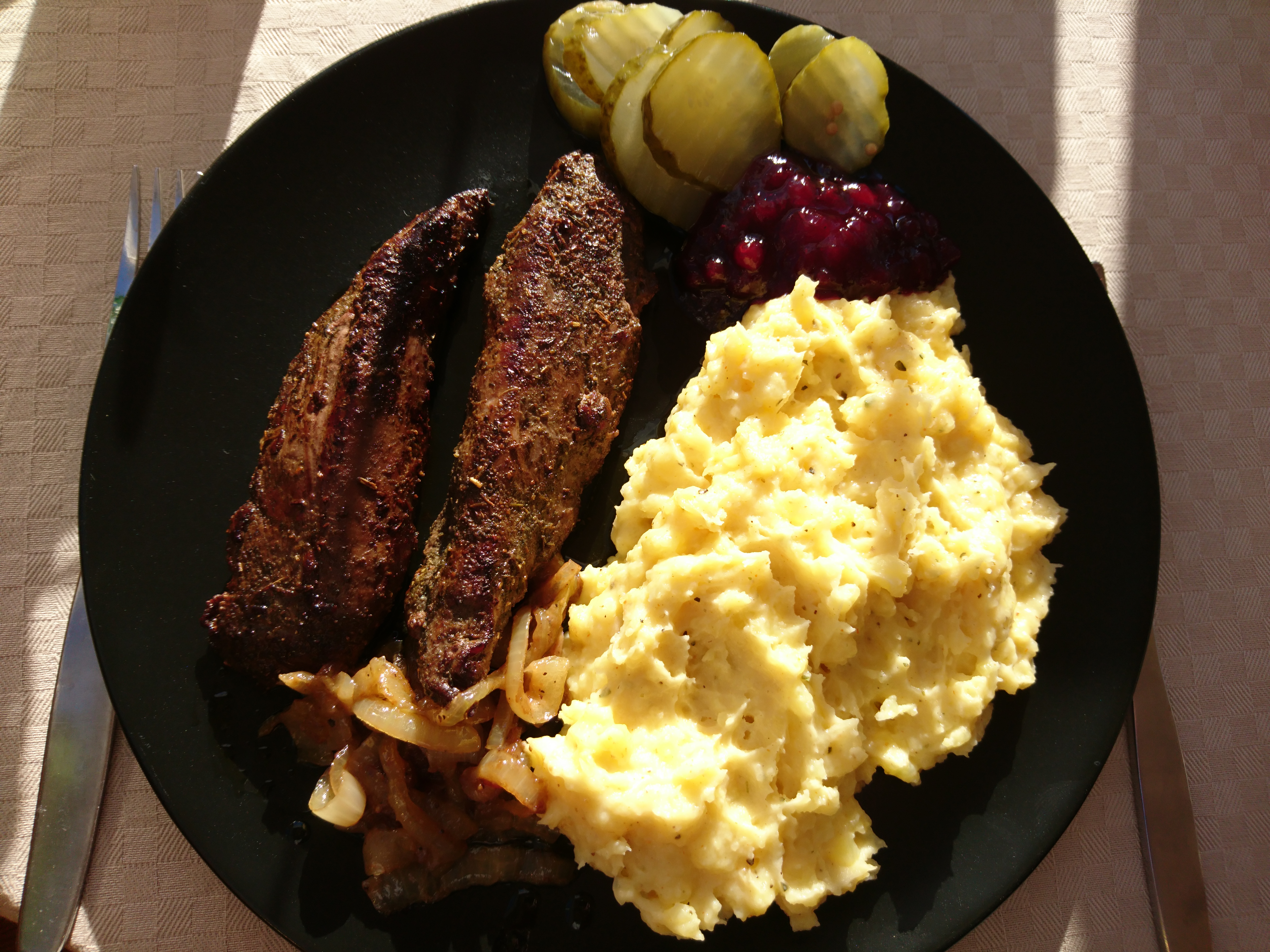 Publicerat Februari 14, 20215 yr Gårdagens. Suovas rökt älg och ren som skavades ner med lök sen grädde med vinbärsgele på slutet och ris till det.