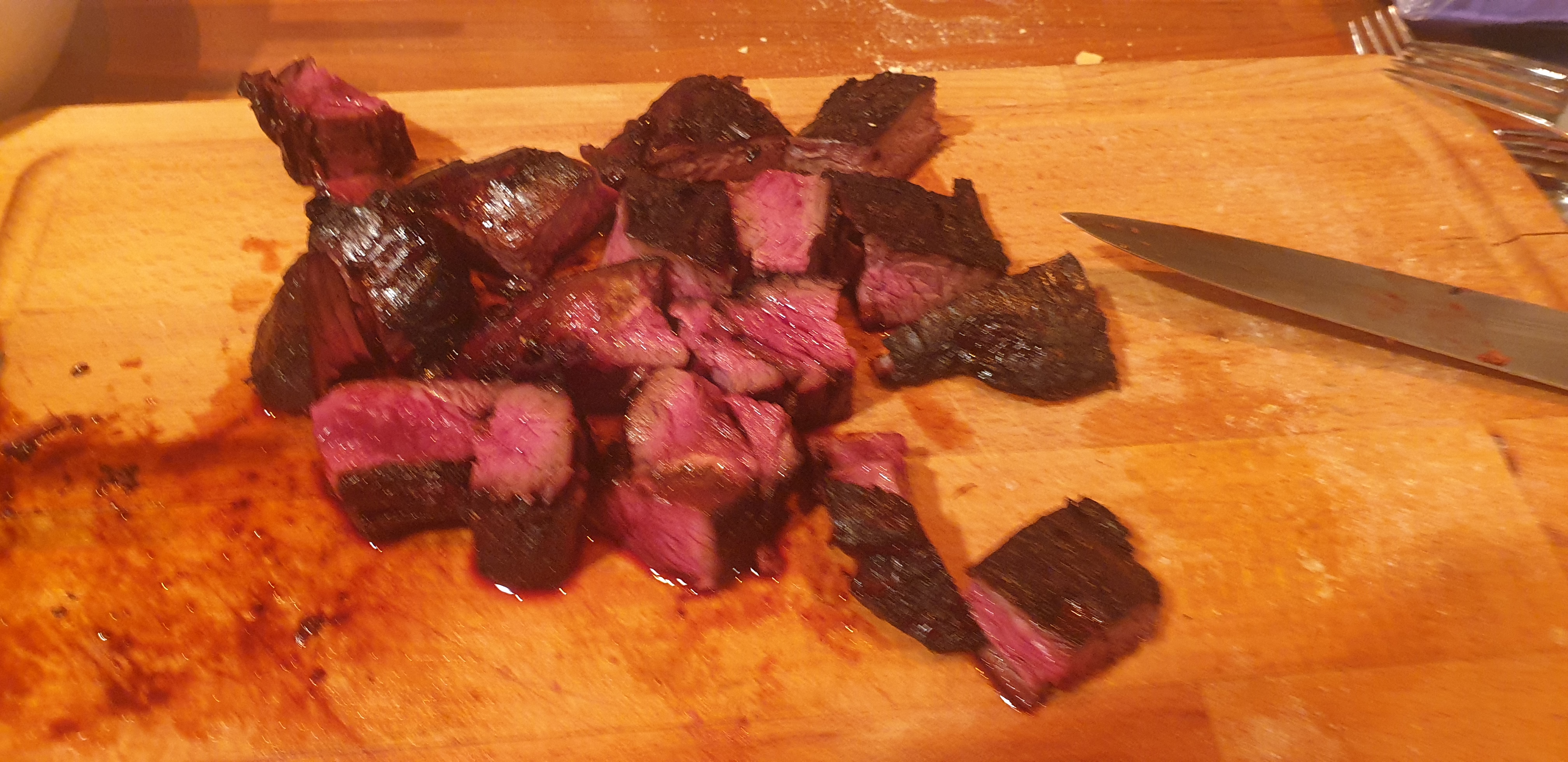 Publicerat Mars 7, 20215 yr Detta är en populär post. Njurtapp eller slaktarstek av älg är en detalj som få tar rätt på. Kockarna på wildriver fick mig att upptäcka denna fantastiska köttbit. Idag marinerad i soja, honung, vitlök och ingefära. Grillad 2.5 min/sida. Serverad som en litet mellanmål med två olika såser och ett glas vin.