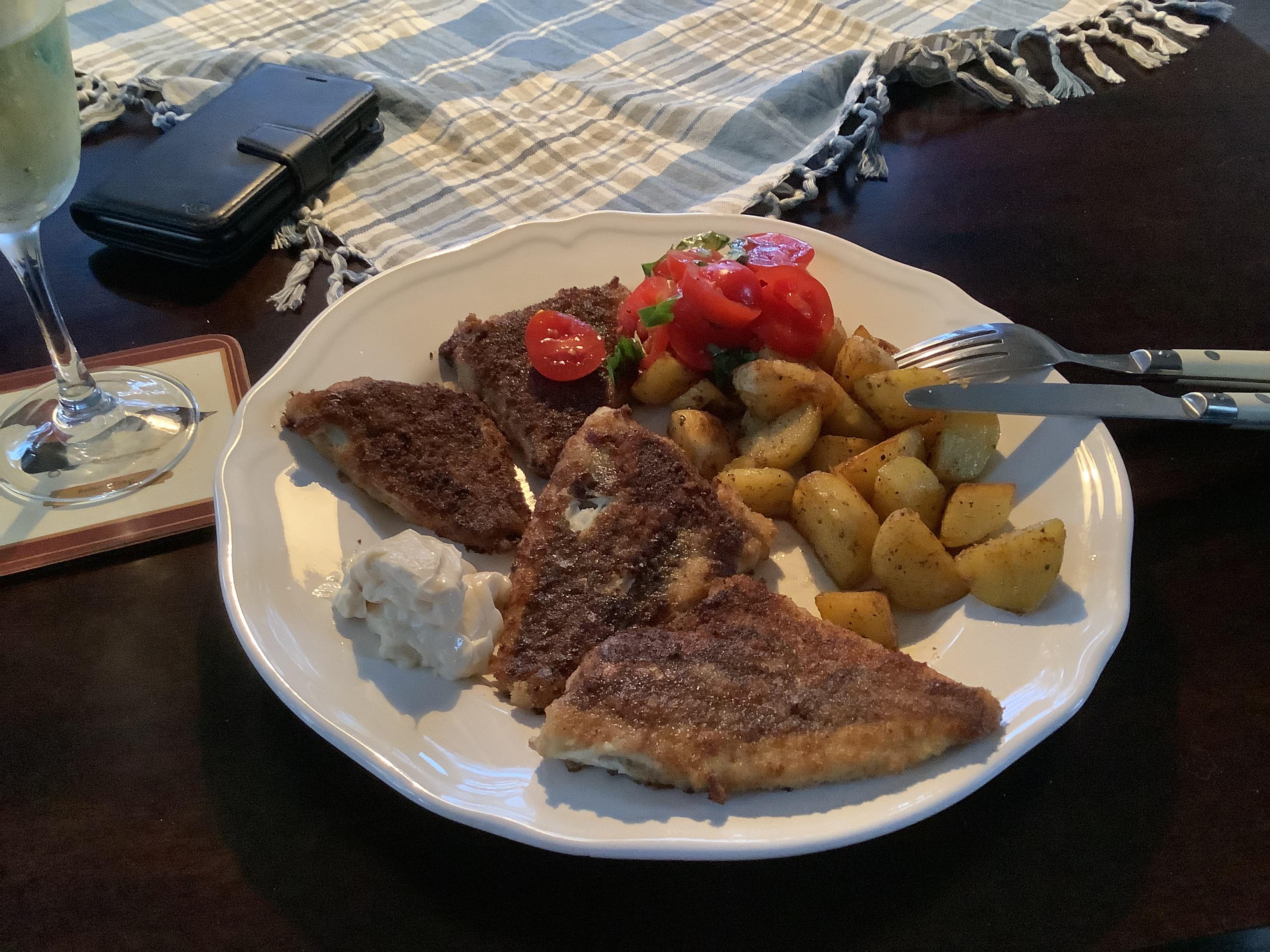 Publicerat Augusti 10, 20214 yr Ugnsstekt lax fångad i Kalix älv, Abbas Citron- & dillsås, egenodlad färskpotatis o mjölk.