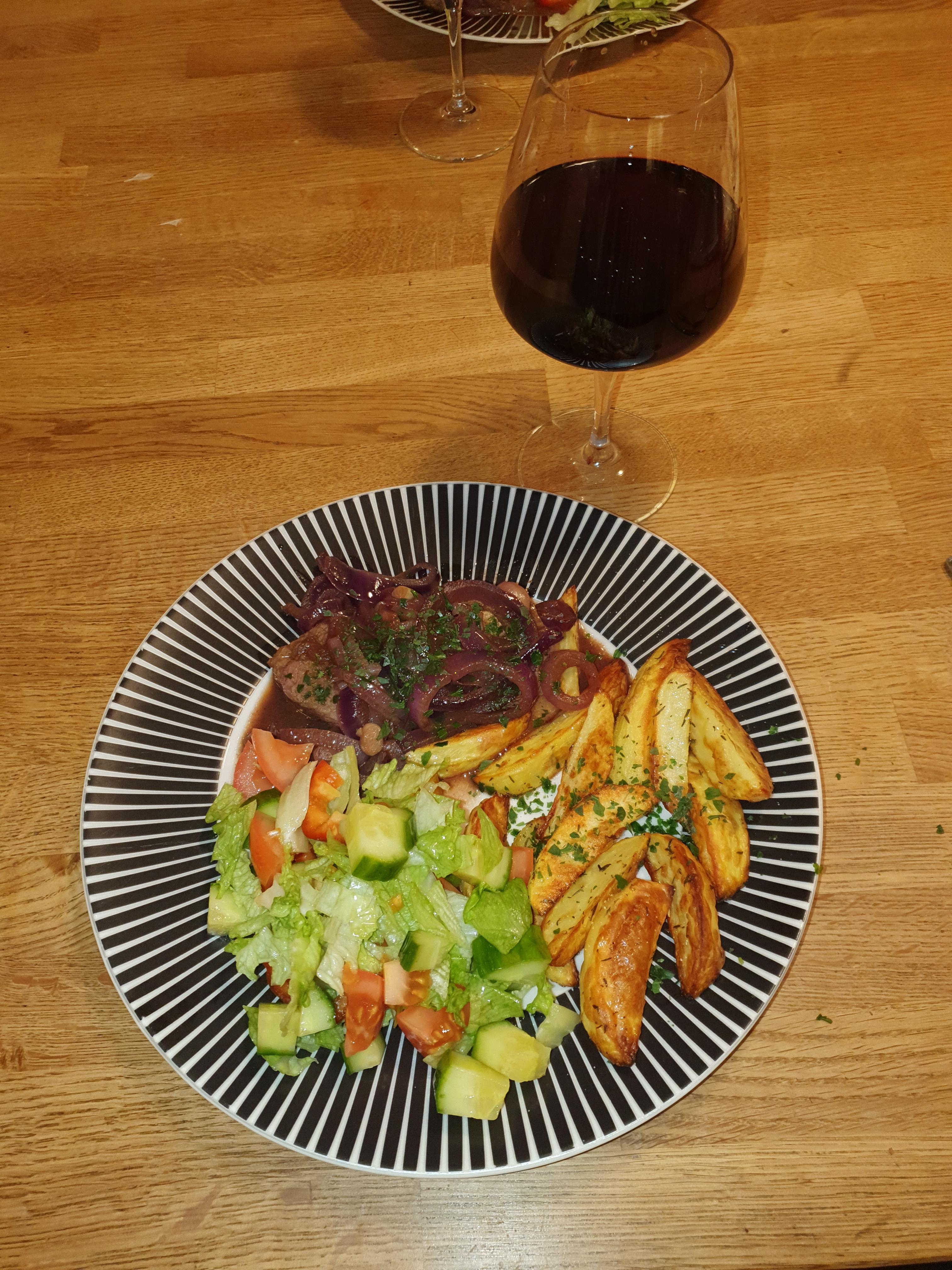 Publicerat Februari 24, 20233 yr Detta är en populär post. Ångbåtsbiff med klyftpotatis blev det ikväll. Första gången jag gör det, men det blev smaskens, så det blir fler gånger. Kan vara bra att äta lite kossa ibland, när man tröttnat på viltkött, så man inser hur privilegierad man är som har tillgång till så mycket bra kött, för ska man få en kossa som slår viltkött blir det stort hål i plånboken😁