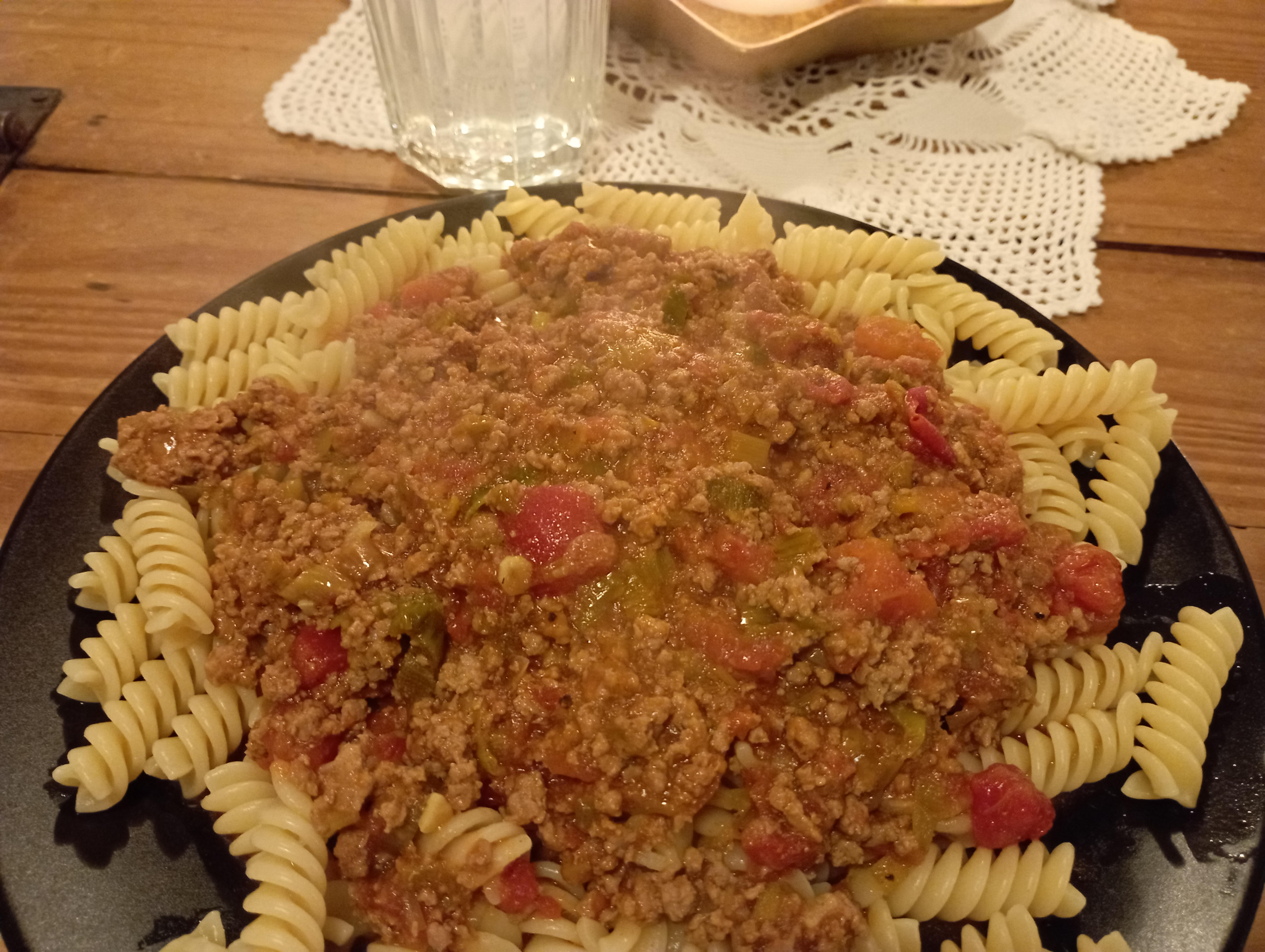 Publicerat Mars 24, 20233 yr Dagens blev en kvällens. Så, till fottbållen serveras Boar-Bolognese. Smaksatt åt det indiska hållet, med bla kokosmjölk, curry, ingefära, spiskummin. Färs är ALLTID bra. /P