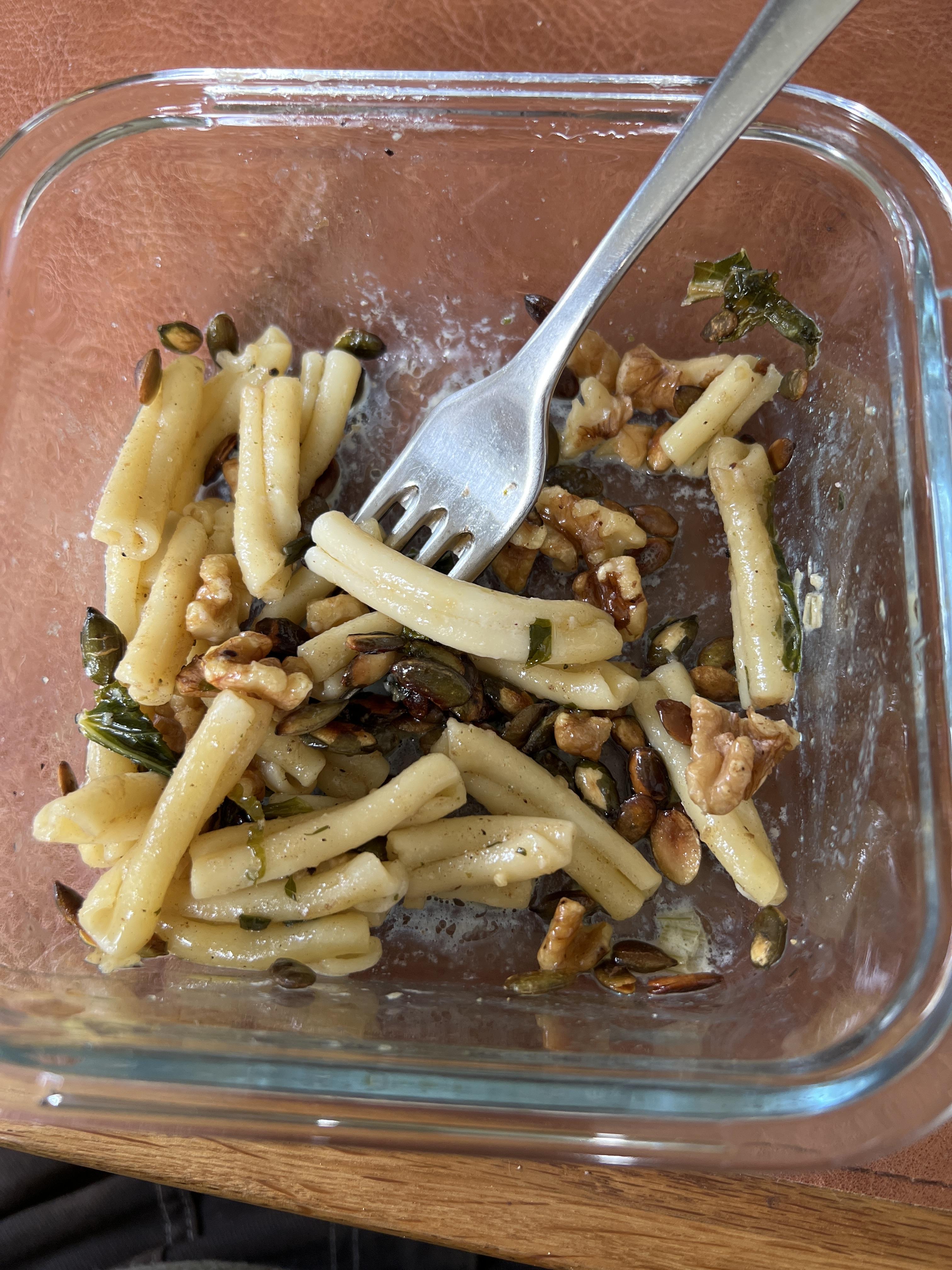 Publicerat Juli 23, 20232 yr Rester från igår, grönkålspasta med rostade valnötter och pumpafrön. Får nog bli en köttbit på grillen ikväll som kompensation!!