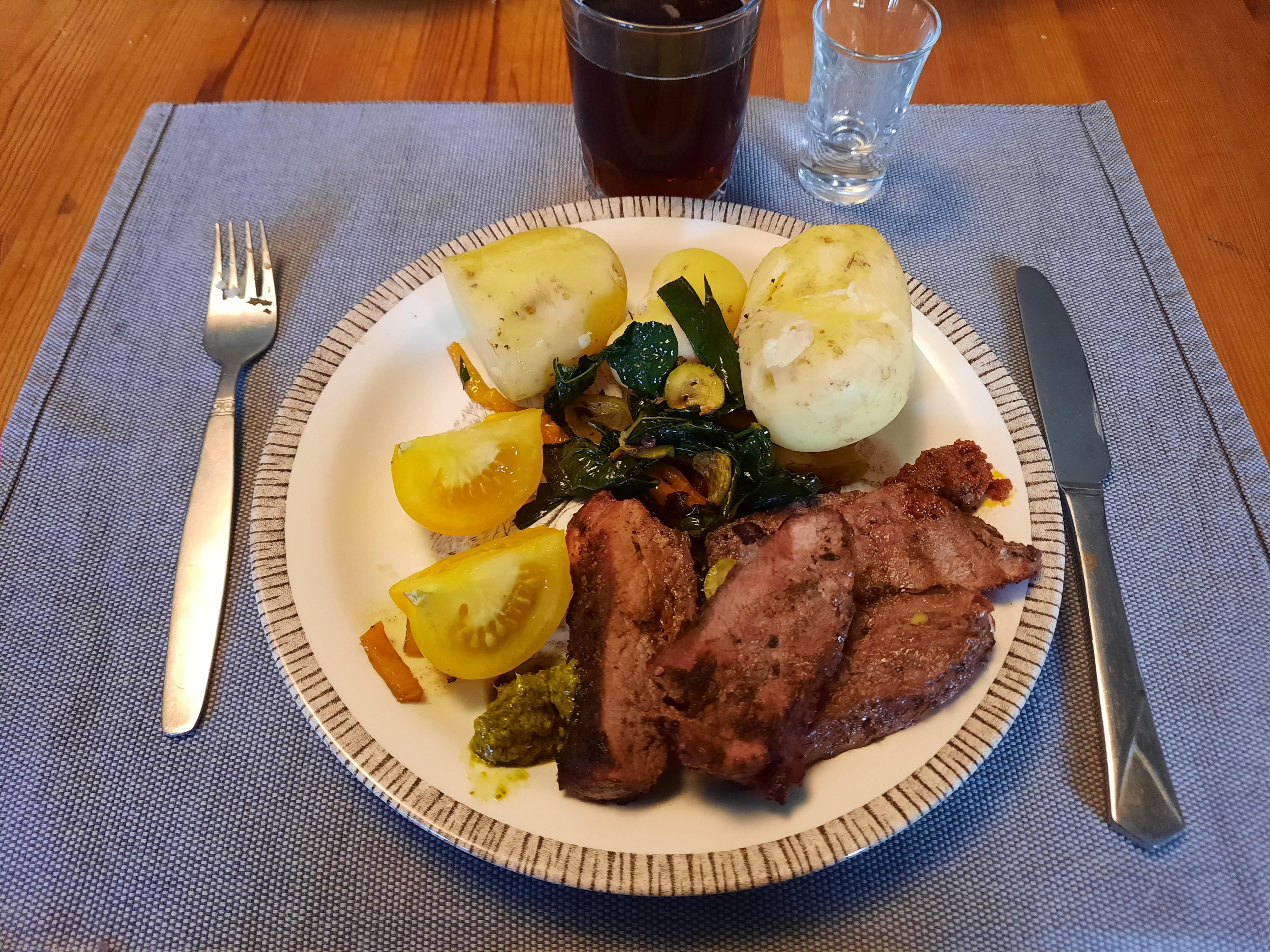 Publicerat September 23, 20232 yr Detta är en populär post. Regnet slutade lagom tills att det var dags för att börja med maten. Stekpannan byttes mot grillen snabbare än blixten. Grillat ytterlår från vildsvin. Idag var allt utom peston närodlat 🥰 Måltiden sköljdes ner med dansk finöl och snaps😊