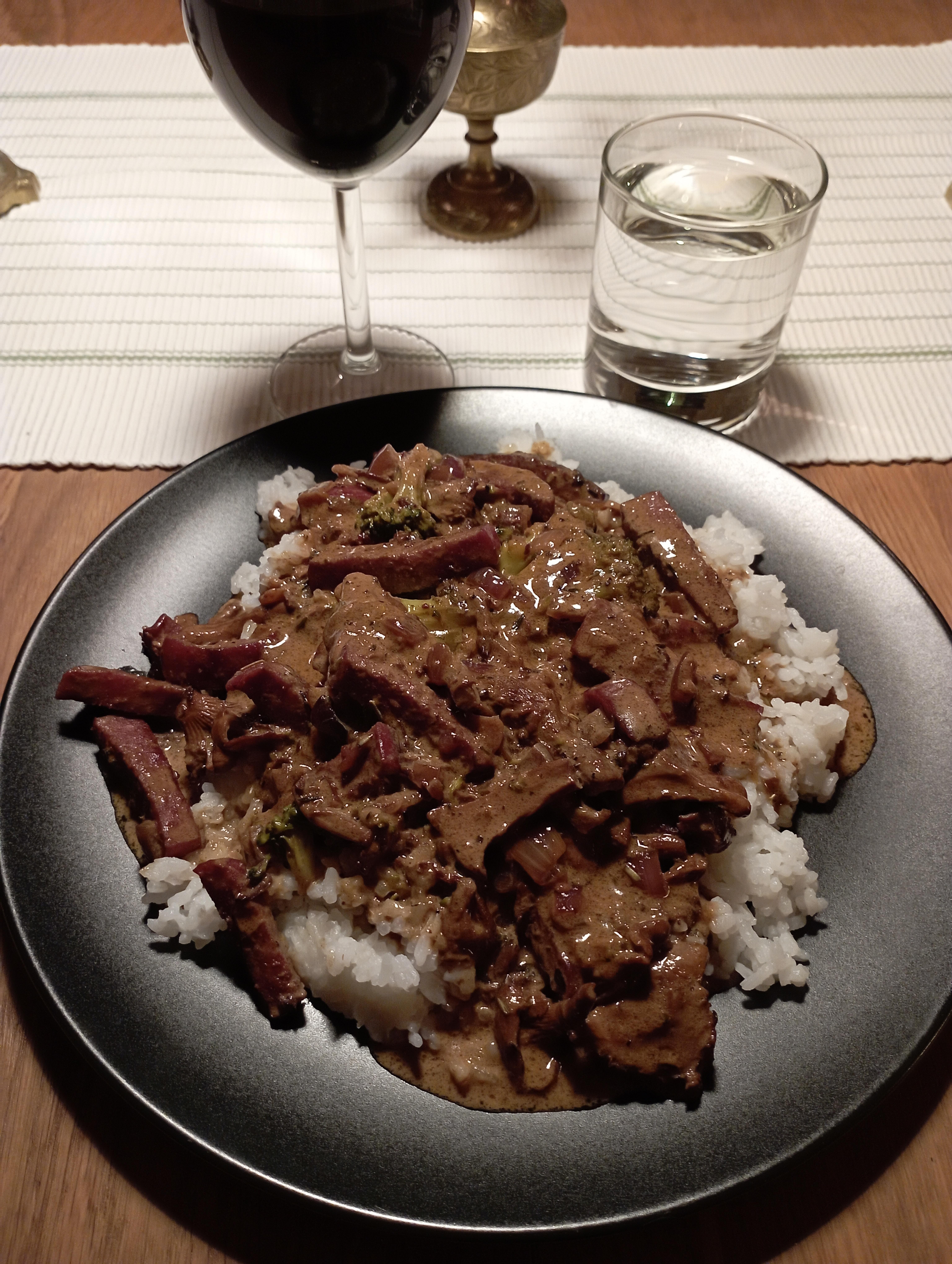 Publicerat September 16, 20232 yr Hmmm! Kvällsimprovisation. Blev med lite kantareller i veckan. Hade plockat upp en vs-falu ur frysen. Tja! Går väll å göra nå gryta på de med. Smaksatt typ med lök, vitlök, timjan, rosmarin, ingefära, pepparrot, lite tomatpure å liqvid smoke. Grädde å creme fraiche som blöta, samt soya för färg, å lite broccoli som får vara representant för grönt. Tuta röt till, funkar bra. /P