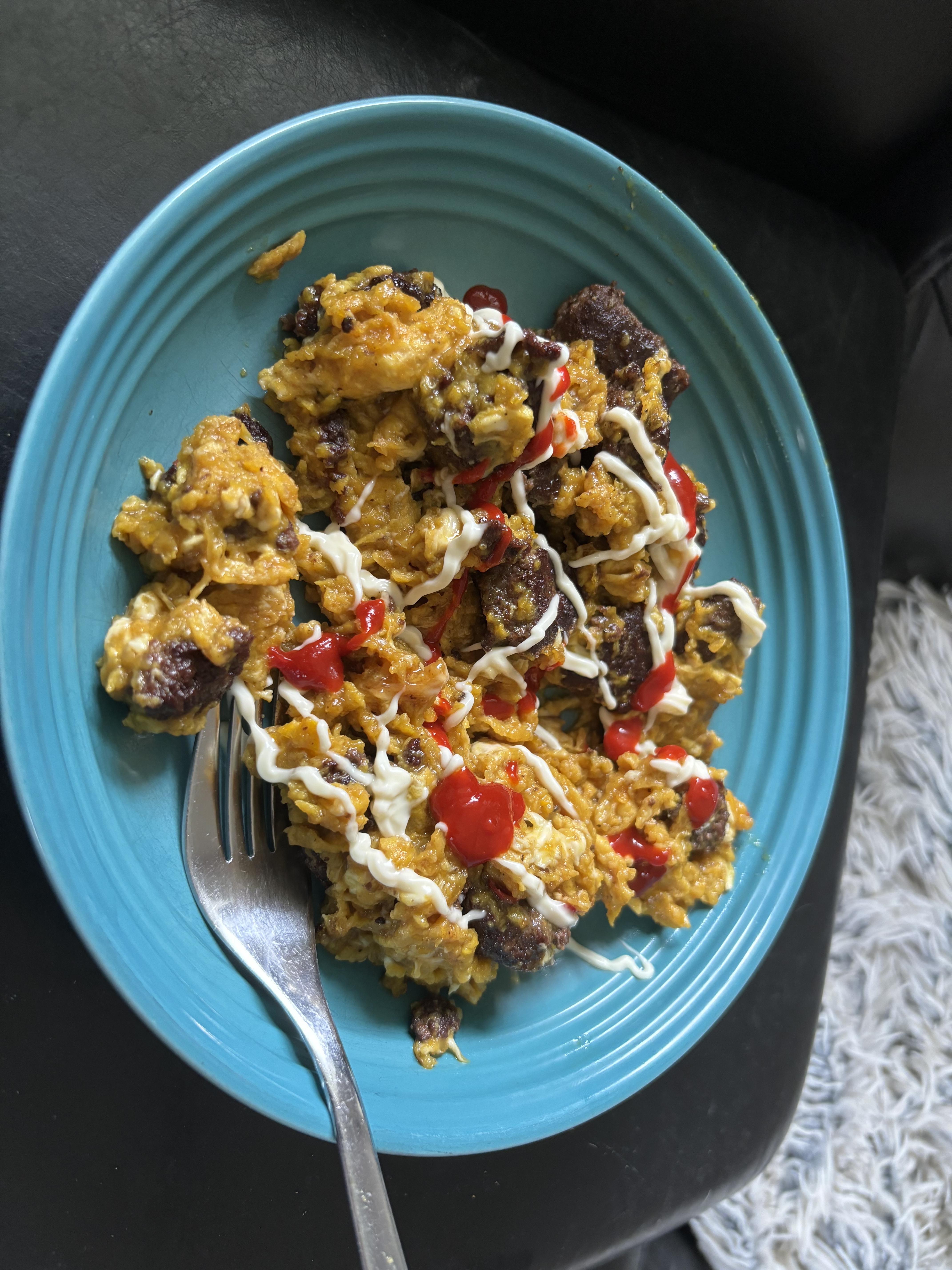 Publicerat Oktober 16, 20241 yr Detta är en populär post. Dagens middag för mig. Äggröra på sex ägg jag fick av Magnus idag (från hans hönshus) när jag och Charlie var på besök. Hopblandade i bunke med lite grädde, salt och en ansenlig mängd riven Folke 🤤 Värmt under omrörning i pannan med en hygglig klick smör. Intas naturligtvis helt utan kolhydrater, annars åker hela portionen rakt ut i bilringarna.