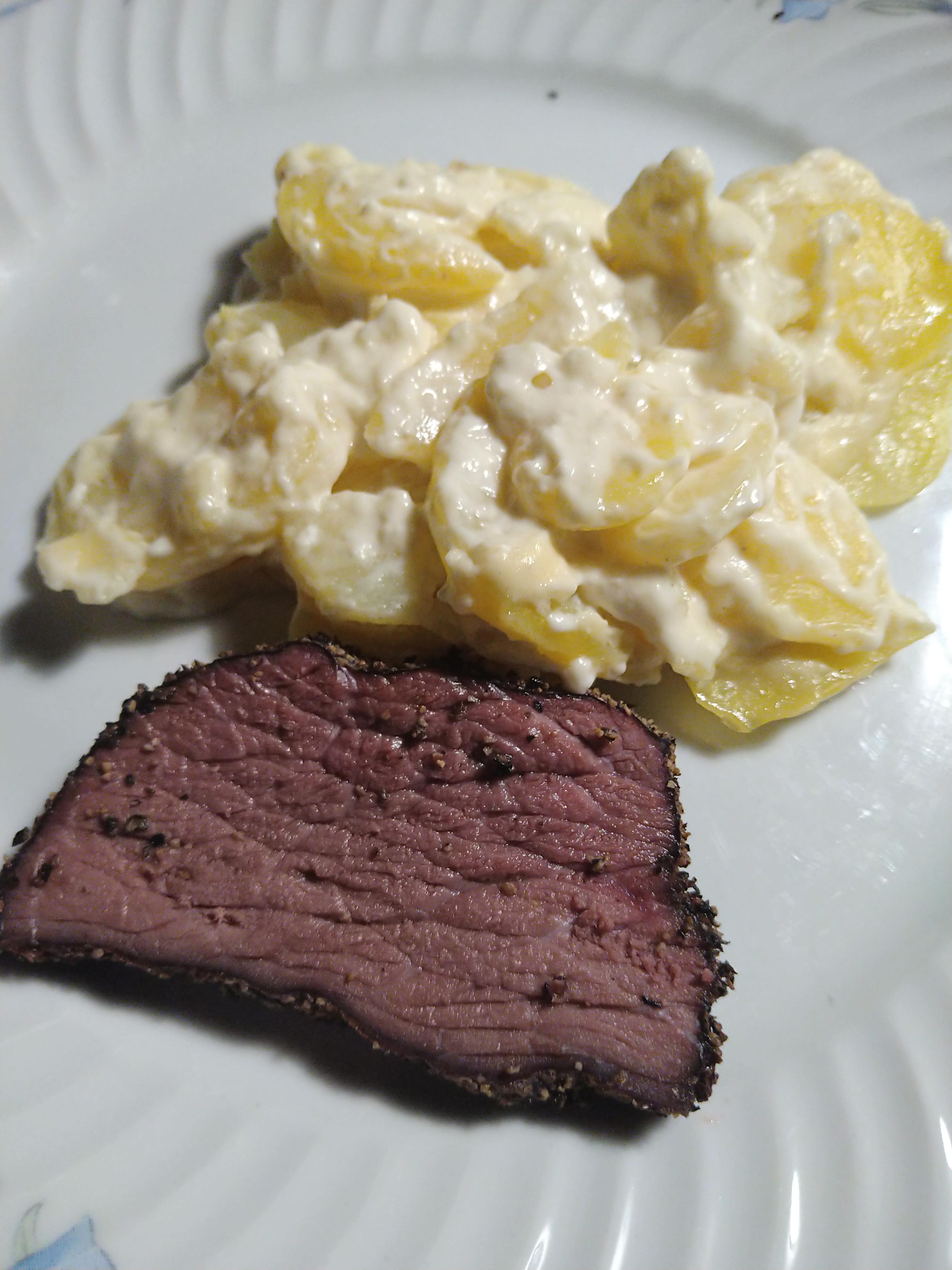 Publicerat Januari 25, 20251 yr Detta är en populär post. Blev köra röken lite idag. Kyckling file till förrätt. Hanks poultry and pork rub (Finns recept på nätet) Innertemperatur 73 grader. Åt med potatisgratäng. Varmrätt rökt älgytterlår rub med grovsalt, grovmalen svartpeppar och lite socker. Innertemperatur 67-68 grader Vitlöksbaugette på sidan. Var rätt gott, hade varit ännu bättre med en bra rödvinssås till älgköttet. Men jag tog en extra portion ändå. 😋