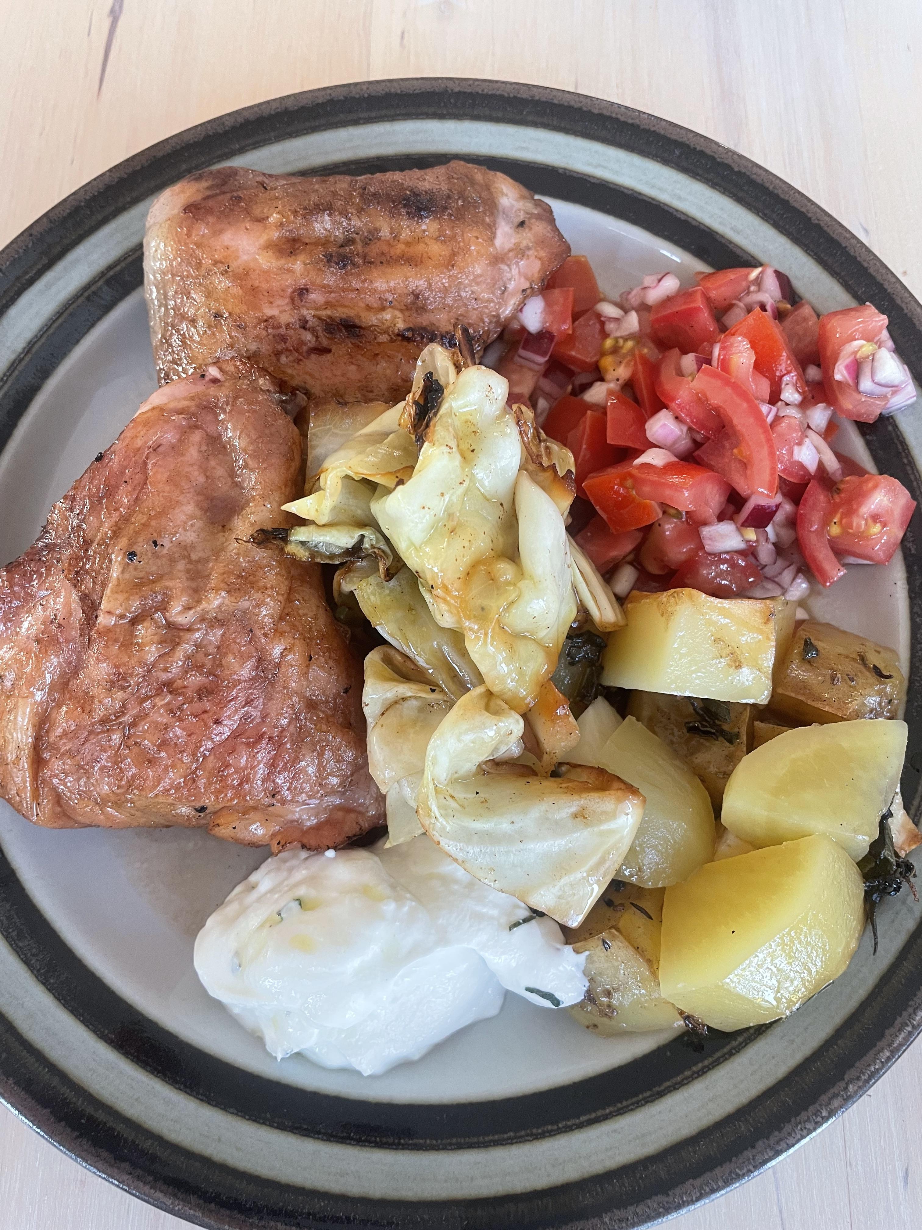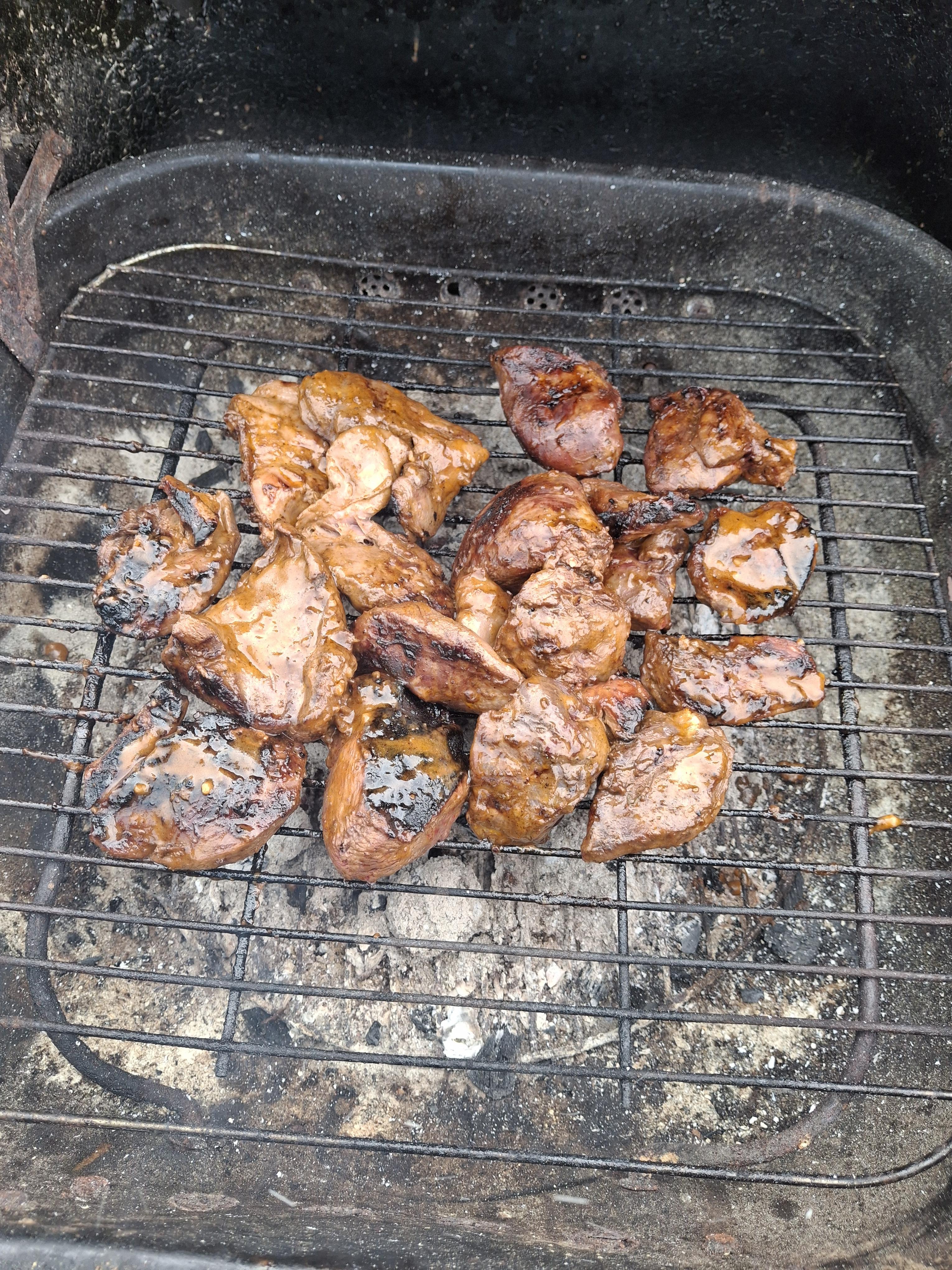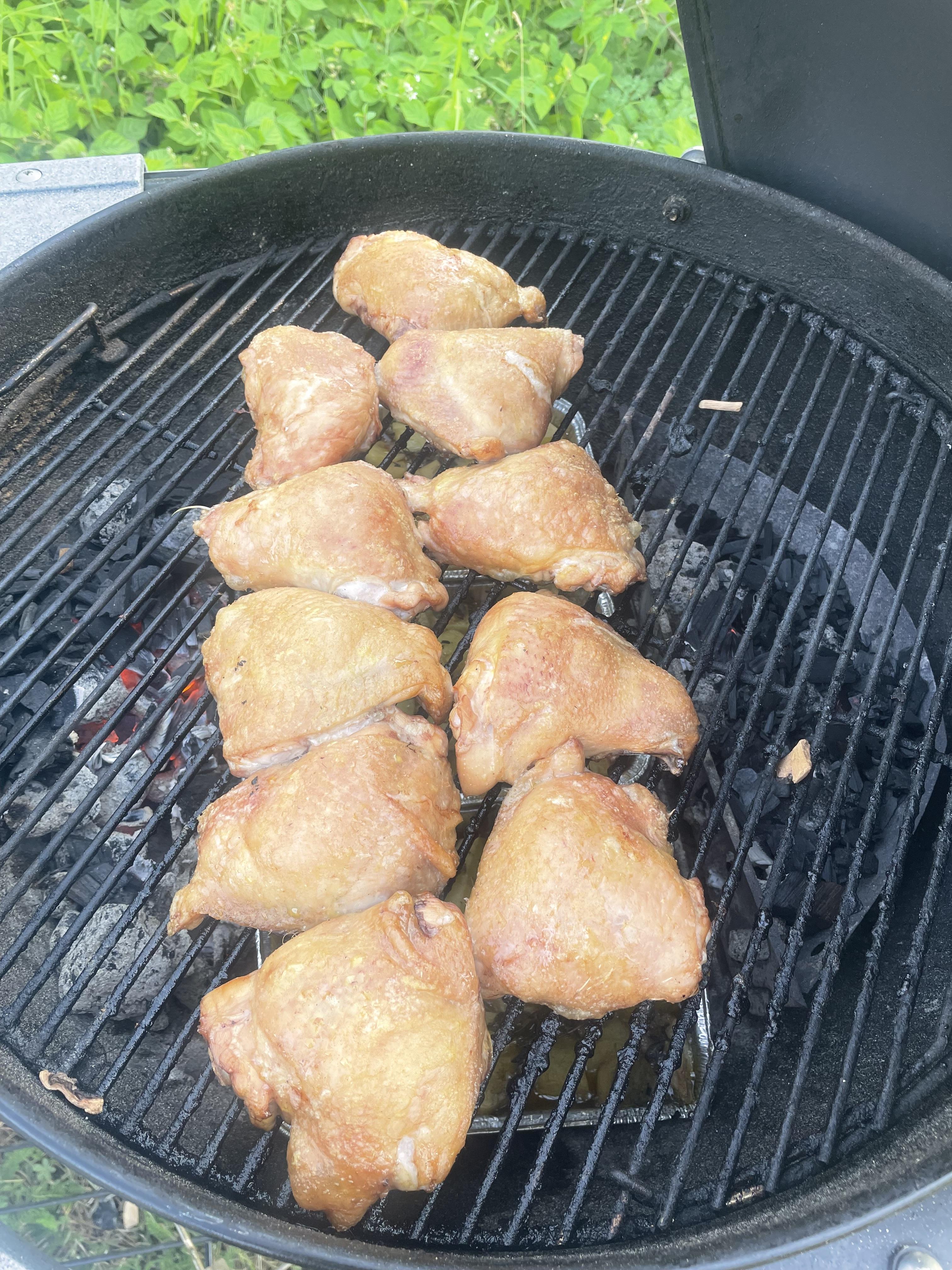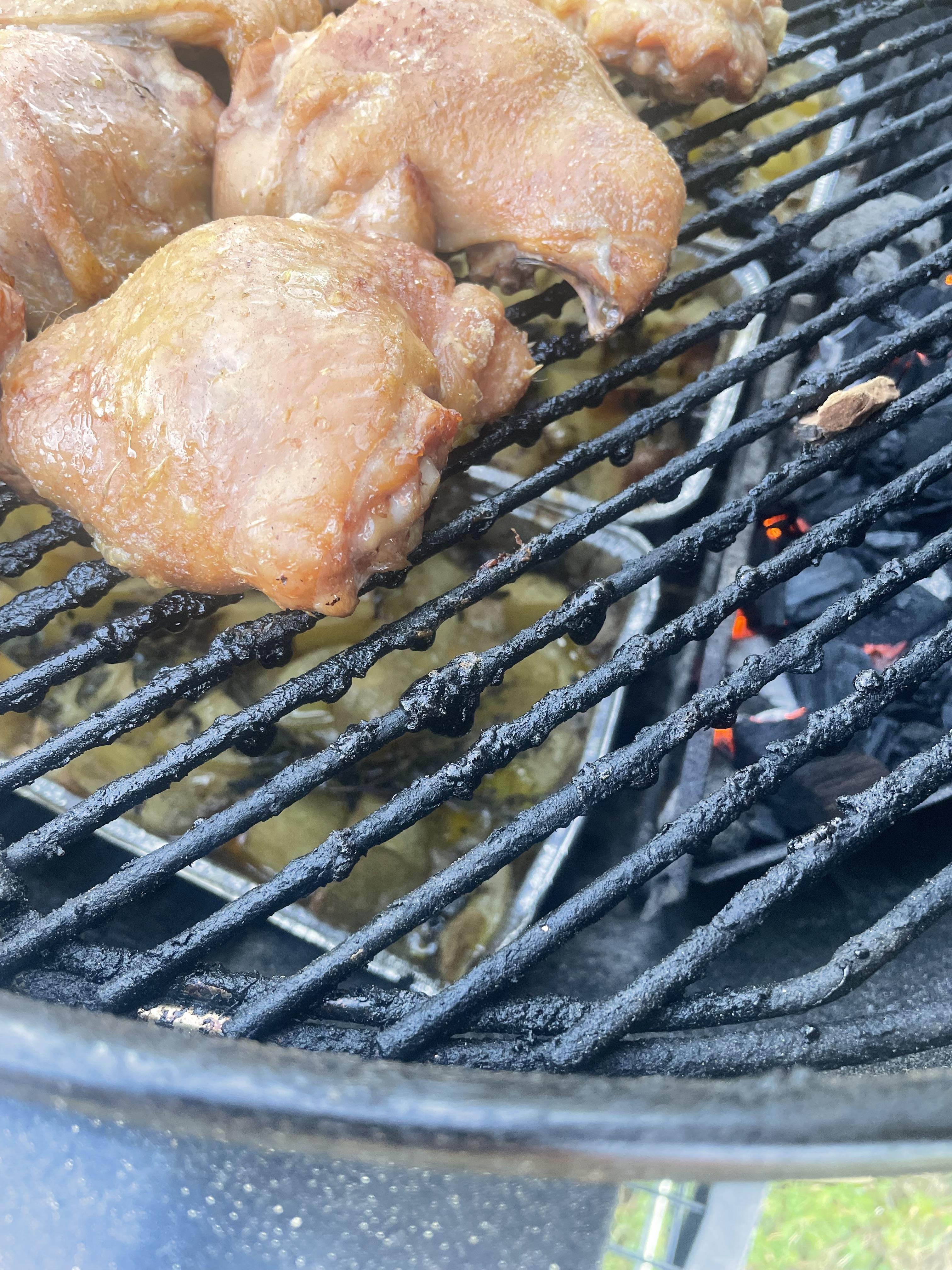 Publicerat Juli 23, 2025Jul 23 Detta är en populär post. Kyckling med formar under innehållandes potatis, vitlök, örter och öl. Blev lite för mkt öl så en aning kokt konsistens på potatisen. Tanken var att ölet skulle koka bort så potatisen krispa i kycklingfettet på slutet. Gott hur som helst. Rökte kycklingen en smula på slutet med hickory. Grillad spetskål med kanderat smör, japansk soja och grillad citron. En riktig höjdare.