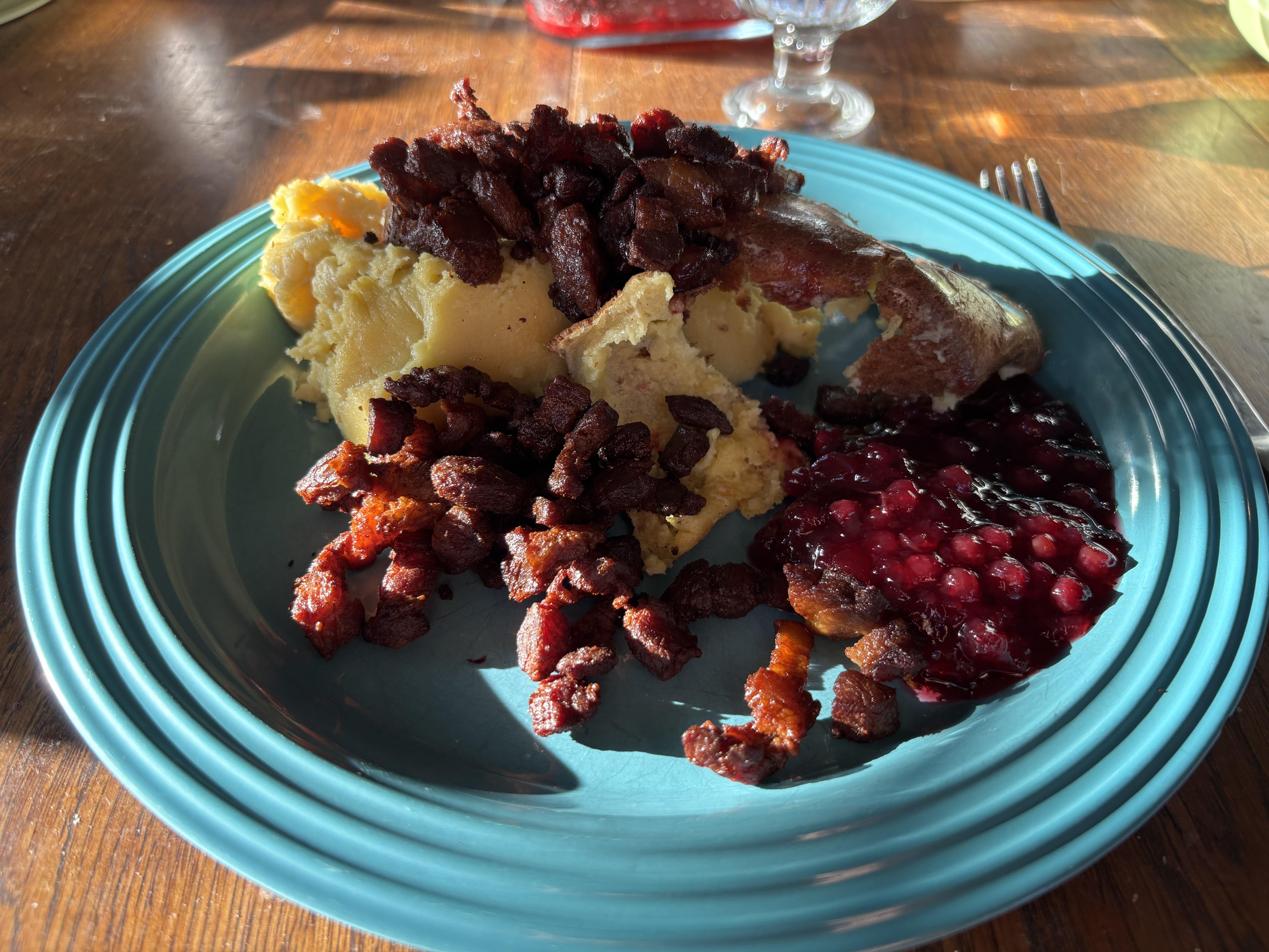 Publicerat Augusti 20, 2025Aug 20 Detta är en populär post. Ugnspannkaka med knaperstekt fläsk och lingonsylt inmundigas i det doktorska hemmet i afton.
