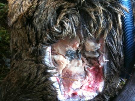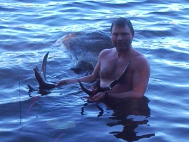 Publicerat Oktober 13, 201015 yr Älgjakts premiär! Har inte ens hunnit ut på pass när ett skott hörs. Jaktledaren rapporterar att han skjutit på en tjur. Jag ropar upp och frågar om han vill att jag skall komma dit med hund. – ja gör gärna det, det gick nog inte så bra, får jag till svar. Väl framme på skottplatsen så visar det sig att älgen stått med rumpan mot honom men han har suttit bra med stöd och när älgen vinklat upp hals/huvud så tog han ett halsskott, ( Ja jag vet …. Han var inte själv speciellt imponerad av sig själv om man så säger) tar med mig Sasja, laikan och på skottplatsen finns inget. Efter c:a 70 finns ett lite blodstänk i vitmossan + en centimeterstor köttslamsa. Vi spårar ner för ett berg 3-400 meter och kommer fram till markgräns. Vi åker tillbaks till vår samlingsplats och ringer grannjaktlaget vilka meddelar att de kommer om ett par-tre timmar. Kl 11.30 är vårt jaktlag utposterade om älgen väljer att slå en lov in tillbaks på vår mark och grannjägarna passar av ett avsnitt mellan två sjöar. Oländig terräng höga berg och gallrade planteringar gör att det tar tid att få ut passarna. Jag och jaktledaren tar oss tillbaks till skottplatsen och jag väljer att spåra med Zorba, wachteln, jaktledaren får ta Sasja i koppel. Vi spårar fram till gräns över blöt mosse/myr med ganska mycket vatten upp genom gles tallskog och upp i ett bergsparti, det går rätt i förhållande till grannlagets passare. Under första km så hittar jag två små bloddroppar det är allt!!! Efter ytterligare 5-600meter ca 1500m skottplatsen så skymtar jag till en skugga mellan träden 70-80 meter bort och jag säger till jaktledaren att släppa Sasja. Hon drar iväg som en avlöning. Det går ner för berget och ner mot en större sjö som utgör markgräns mellan vårt och grannmarken. En av grannlagets passare har haft älg och hund förbi sig men sa på radion att det gick Mycket fort och älgen verkade frisk.. Sasja får stopp på älgen nere i sjökanten 8oo meter längre bort och ståndskallet ekar! Jag lämnar jaktledaren och Zorba bakom mig för att försöka ta mig in på ståndet och avsluta, när jag har ca:250m kvar så tystnar Sajsa och en av våra passare på andra sidan sjön rapporterar att han ser att älgen simmar ut. Jag springer ner till vattnet och ser älgen simmar över sjön! Det är nog 600-700 meter tvärs över sjön. Vi bryter och grannlaget åker till sitt. Fika och diskussioner rörande skadan. Alla är överens om att älgen är skadad, men hur mycket? Några menar på att den endast har en köttskada någonstans i halspartiet, själv så inser jag att man kan spekulera hur mycket som helst, men vi kommer inte få veta först älgen är död. Men visst rimligast vore det nog att dra slutsatsen att skadan sitter lågt i hals kanske i ”roten” på skägget. Jag vill gå runt sjön från vårt håll och spåra av sjökanten, förr eller senare borde jag då hitta var älgen gått upp och därifrån fortsätta eller åtminstone få nått kvitto på om älgen fortsatt blöder. Gubbarna passar av ganska motvilligt, de vill släppa taxen och se om de kan få upp någon hjort… Jaktledaren bestämmer att jag skall få en chans till. Klockan är nu runt två och det är alltså mer än sju timmar sen älgen blev påskjuten. Jag tar med ner till sjön, självklart finns det inga vägar… Minst en km promenad genom röjda hyggen och klippblockterräng. Småsvettig redan när jag kommer ner till sjökanten. Sasja får gå i kortkoppel och Zorba i spårlina, bössa på ryggen. Jag tycker att han är intresserad av sjökanten mest hela tiden men får inte direkt hugg upp i terrängen. Efter det att jag passerare en liten vik med ett utlopp av en liten bäck där jag trasslar mig igenom vass och vide, så hugger Zorba, Sasja som går i kortkoppel hugger också och kör ner nosen i backen. Zorba hinner spåra 30-40 meter så plötsligt står älgen där! Två hundar, en lina bössa på ryggen. Vi är nu ute på en lite udde och älgen väljer att springa ifrån mig, när jag fått av bössan så har jag inget att hålla på, satan jag släpper linan och springer 10 m upp för en liten kulle, och ser precis när älgen kaster sig i vattnet. Jag hinner kolla av riktning och när älgen är 40 m ut i sjön så har Zorba precis hunnit ut 5 m i sjön och då låter jag skottet gå! Håller mitt i huvudet. Älgen slår lite med huvudet och plötsligt blir jag varse att Zorba simmat ut med språrlinan hängande efter sig. Han är framme och biter lite i mulen men jag skriker att han skall komma HIT! Å tror eller ej så kommer hunden åter utan att snärja i linan, puh! Binder upp hundarna och konstaterar att det är en bit ut till älgen, och ingen båt finns i sjön, mao endast en sak o göra! Simma! Uppfriskande… Väl inne vid land konstaterar jag att min kula har tagit i benutväxten som hornet växer ut ifrån. Den har inte penetrerat!!! Kula Oryx skjuten i 9.3x62 ska det verkligen vara så här… Här har vi skurit loss hornet och kulan har gått in under rusenkransen i benutväxten Antagligen så blev älgen medvetslös av smällen och drunknar. Älgen får ligga över natten till dess att vi får dit en Älgtracker. Det tar nästan två timmar att få ut den till farbar väg. Det första skottet har inte tagit i halsen, Oryx cal 30-06 utan högt i bogen, mao har älgen haft en liten vinkel kulan har gått igenom bogbladsbrosket och in i brösthålan men inte tagit hål på lungan!!! För om lungan skulle ha punkteras borde det funnits blod i luftfvägar Vi hittade inte kulan men jag misstänker att den suttit i någon vävnad i yttersta siktet av lungan utan att gå in själva lungsäcken. Under ryggraden! Maximal olyckligt och dessutom dålig penetration, om kulan penetrerat längre hade den slagit emot haltskotpelaren och älgen hade dött omedelbart. Summa summarum ett skitdåligt skott. Somnade ganska nöjd!