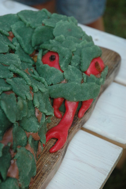 Publicerat November 10, 201015 yr Författare Älg! Eller egentligen vilket klöv villt som helst.Se bara till att träffområdet är ordentligt utmärkt... bra idé. då skulle man kunna ha riven choklad som päls, hallonfyllning som blod+röda organ.... kan bli rätt fräckt. marsipanhorn?