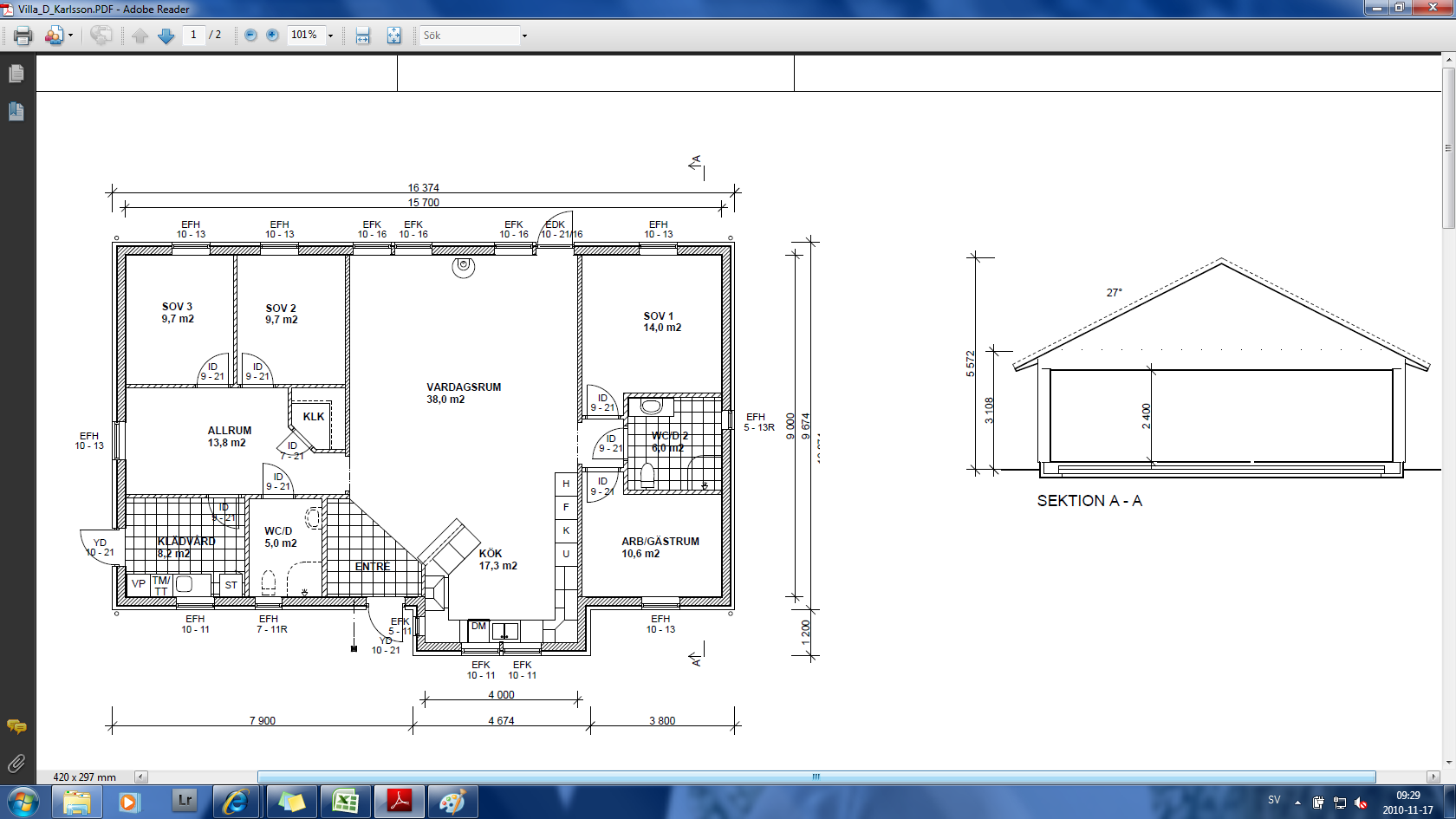 Publicerat November 17, 201015 yr Författare Vi har gjort en hel del förändringar av huset från orginal bland annat har vi ritat om köket till ett som passar oss mycket bättre Så här ser det ut orginal http://www.varbergshus.se/web/Sandskar_1_1.aspx Det huset ligger på 2.225 000 i standard
