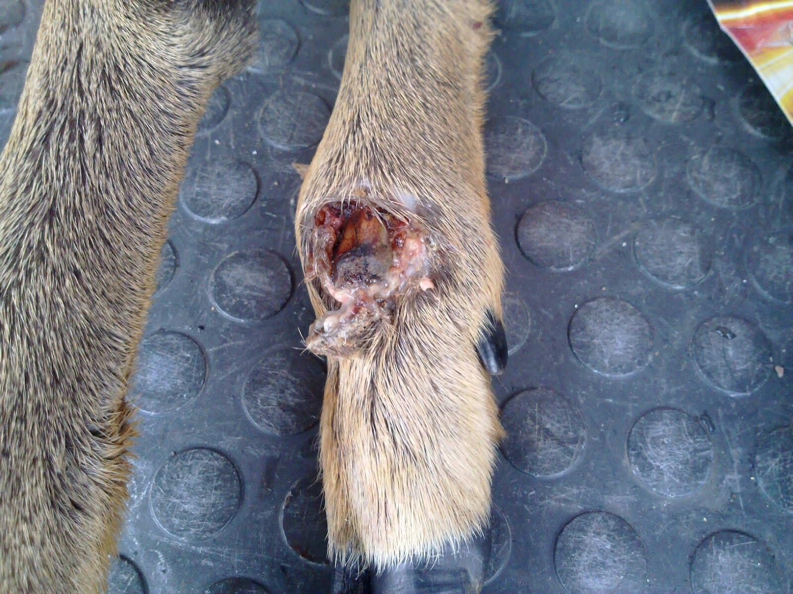 Publicerat December 6, 201015 yr Ett rådjur observerades i en trädgård som ligger inom mina marker men en skada på bakbenet. En utsänd kunde skjuta geten och tog denna bild. Vad tror ni det är för skada? mvh/Må