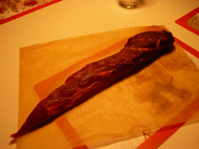 Publicerat December 31, 201015 yr Här har det hängt till sig en präktig Oxfile.. den har fått hänga en vecka ute i boden, torrt och fint i 4+ grader. Den har blivit härligt svart och luktar underbart nu. Till den skall jag göra ugnsbakad klyftpotatis och en bernes sås.Till det serveras ett Rött Jester junior, cabernet sauvingnon 2008. Förrätten skall bli Honungs melon och en Italiensk Prosciutto crudo stagionato skinka från Macelleria och till efter rätt så blir det en Gräddglas med Jordgubbar.. Lite senare så blir det kex och ostar av olika sorter, vin eller öl = valfritt. Kaffe och aveck, Raketer sen blir det nog God Natt för mig för i morgon så skall det jagas