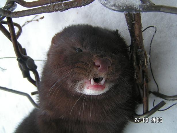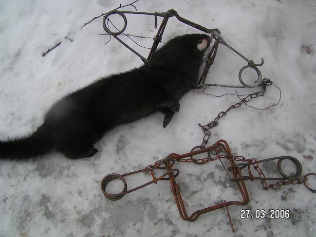 Publicerat Mars 27, 200620 yr Äntligen fick jag en till mink den 8:e... Han har varit mycket knepig. Varenda gång jag har satt ut fällan så har han bytt plats, gång efter gång. Men nu, efter att ha försökt fånga honom i mer än en vecka, så satt han i fällan! Några bilder av minken och conibearfällan, glömde ta kort av fångstplatsen. Men bättre än inget iaf