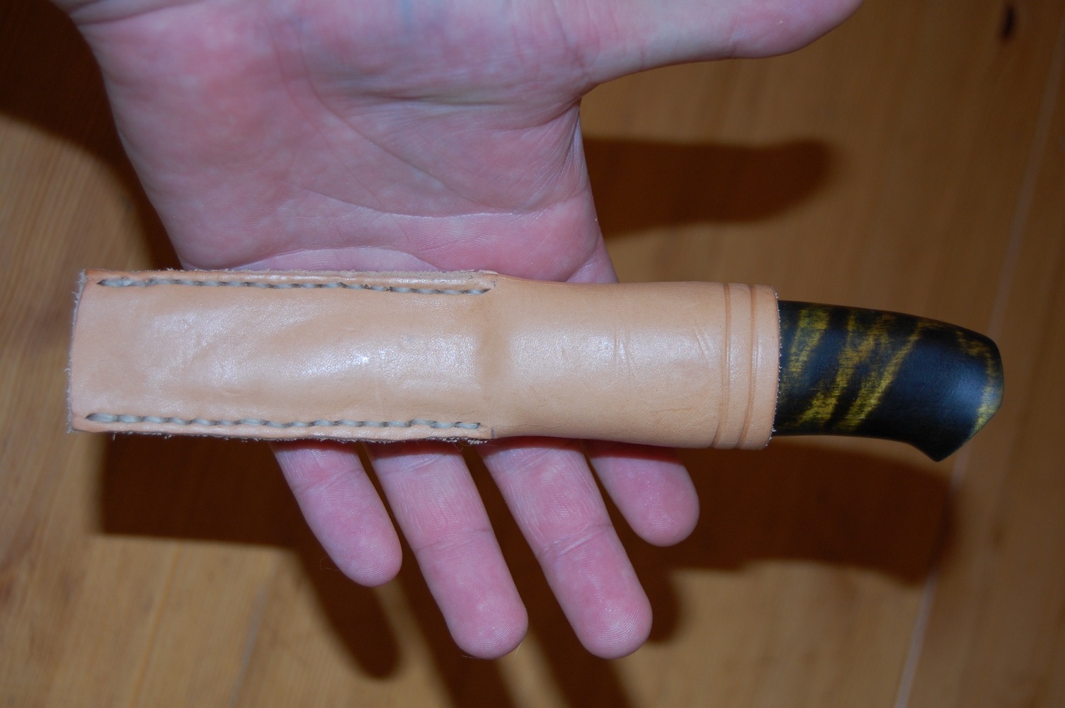 Publicerat Januari 16, 201115 yr Hallojs alla snygga. Vår vän Jeepetorp här på forat undrade om knivslidor som man kan skölja bort fett o blod ifrån fanns o nu finns det. Tog mig en funderare om hur man skulle kunna ha en sköljbar läderslida som inte förlorar sin form. nu är detta bara ett test för o se om det funka och till min egen (mest) förvåning så gjorde den det Knivslidan blev både höger och vänster. jo jag vet det saknas en upphängning.. det kommer på nästa.. ojämna kanter hör till en test. foto ovanfrån utan kniv med hela botten på slidan öppen så att allt klegg o (mög) kan sköljas ut. och underifrån. här trycker jag in sidorna lite så ni ser lättare. O så en bild på katta fan :wub: Ha det gott alla MVH Eas