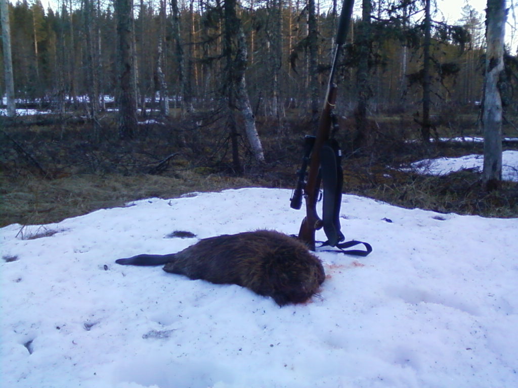 Publicerat Maj 9, 201213 yr Fick äntligen med mig en bäver hem igår. Har varit ute ett 10-tal gånger utan att få skott på dem.Mitt första vilt ever, gött e de!! Nu skall skinnet beredas, låren rökas, hojten lagras och trofén kokas. Beklagar dålig bild, ficklampa och mobilkamera blir sådär. Grattis och välkommen till den trevligaste jaktformen;)