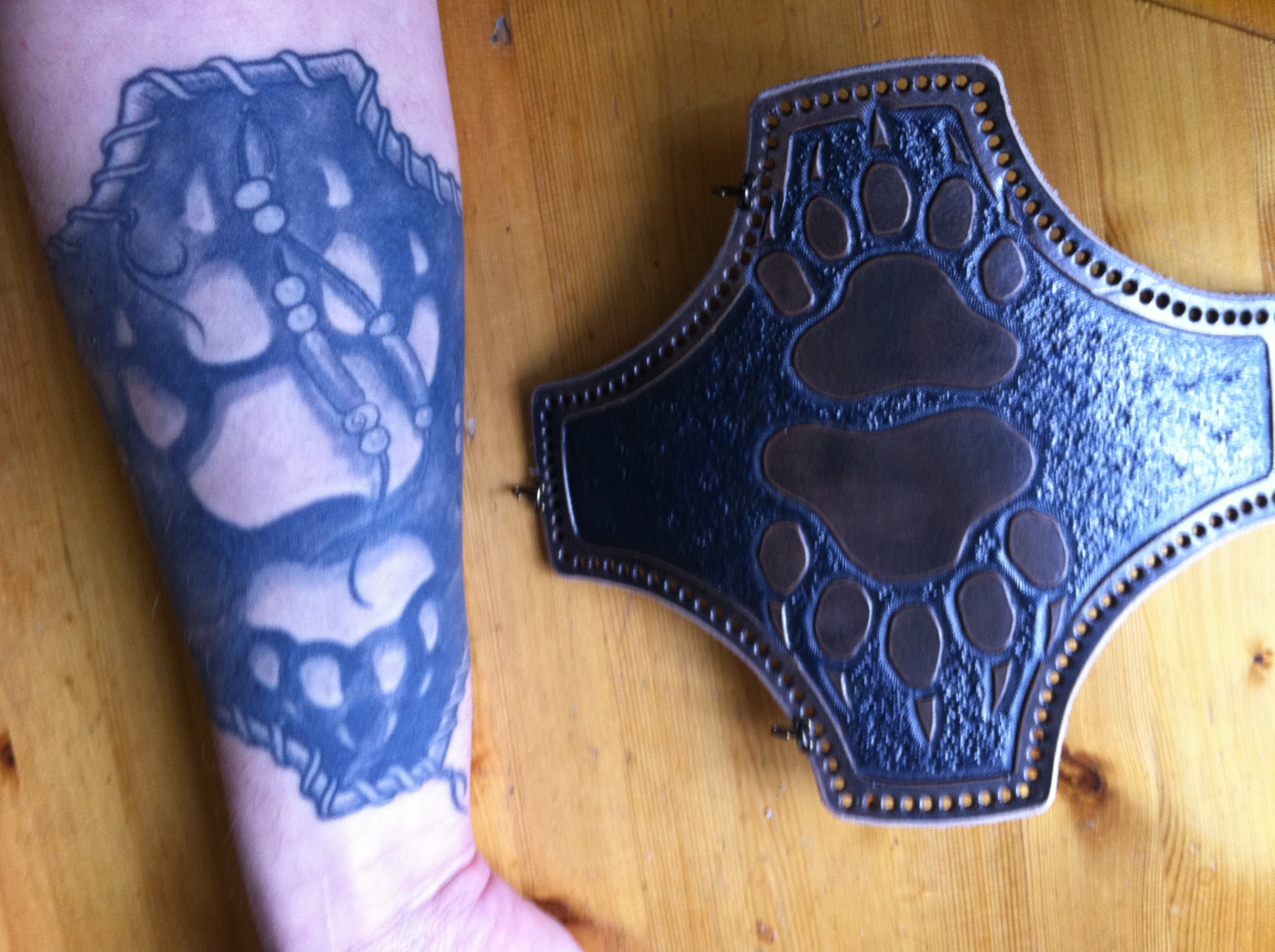 Publicerat April 13, 201115 yr jeg la ut noen bilder for en stund siden og spurte om det var noen som ville ta en utfordring. å lage i skinn. det motivet jeg har som tattoo... dette var bildene jeg la ut: jeg fikk et tips av SEBBE her på forumet å kontakte Tommy. en trivelig hårdrocker som jobber med skinn. http://www.1eye1.se/ denne skrue av en mann tok modig på seg oppdraget, og med bare de tre bilder å jobbe med, og tydelig entusiasme og interesse for hantvärket satte han i gang. i dag har jeg värt så heldig at jeg har fått se kreasjonen så langt. den er ikke helt ferdig enda, men fy f... för et hantvärk!!! denne mannen er helt rå!!! og fortjener litt reklametid her på jaktsidan. se selv: det kommer mer oppdateringer etter hvert.