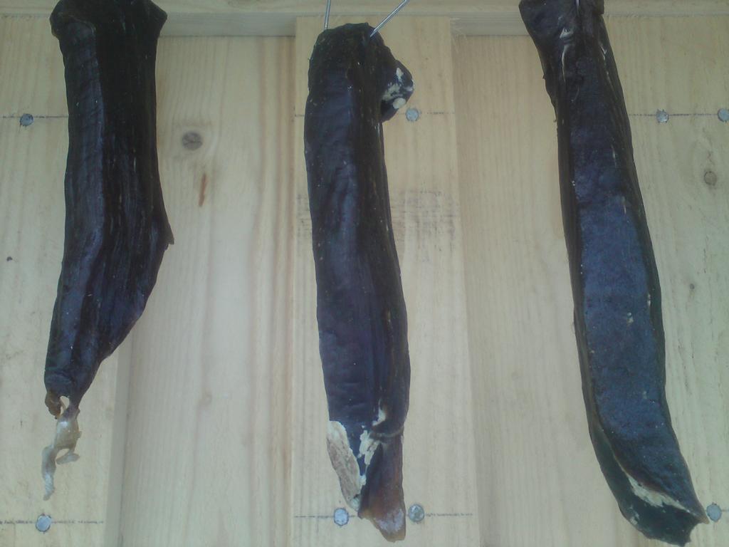 Idag är de 3 veckor sen jag hängde ut de första av köttet :D och på fredag 3 veckorsen jag hängde ut resten så de börjar närma sej med storsteg nu :D Fast tror de behöver ca 1v till för de känndes så häromdagen iaf.. Men de märks :D så får nog inhandla lite öl till helgen ifall ´någon bit skulle vara klar B)