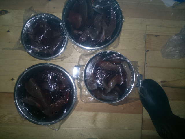 Ca. 9,5 kg kött indränkt i saltlag.