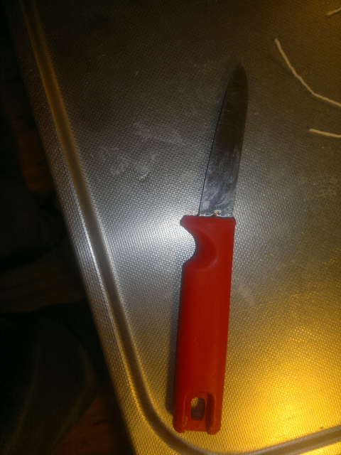 Jag använder mig av steksnöre och en svampkniv när jag gör snittet i köttet där jag trär igenom snöret för upphängning.