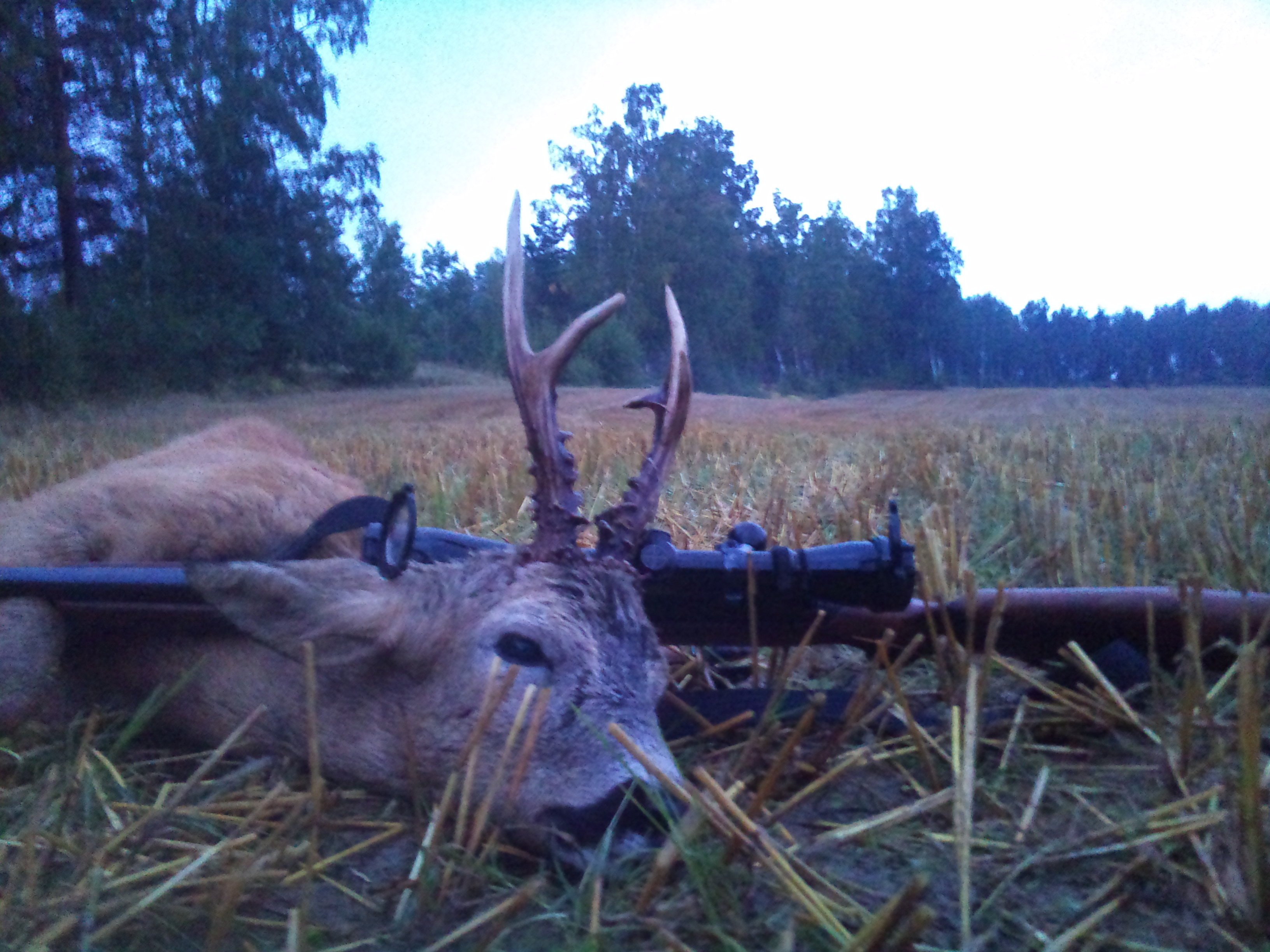 Publicerat Augusti 16, 201114 yr Blev en liten sexa! Först kom det en räv över hygget som jag aldrig fick skott på.. Kör igång buttolon och strax efter 10 minuter kommer bocken fram på 80 m och står och tittar mot mitt håll. Bössan var inte i position, men så fort bocken försvinner småspringandes in i björkslyet var jag redo.. Den kommer fram, fortfarande i bra rörelse, trycker jag ner buttolon i botten och då tvärstannar bocken. Högt gräs gjorde att jag bara såg huvudet och halsen. Skottet går utan tanke.. Väl framme ser jag att skottet hade tagit i halsroten! Packar ihop och åker hem! I kväll blir det på en annan mark.