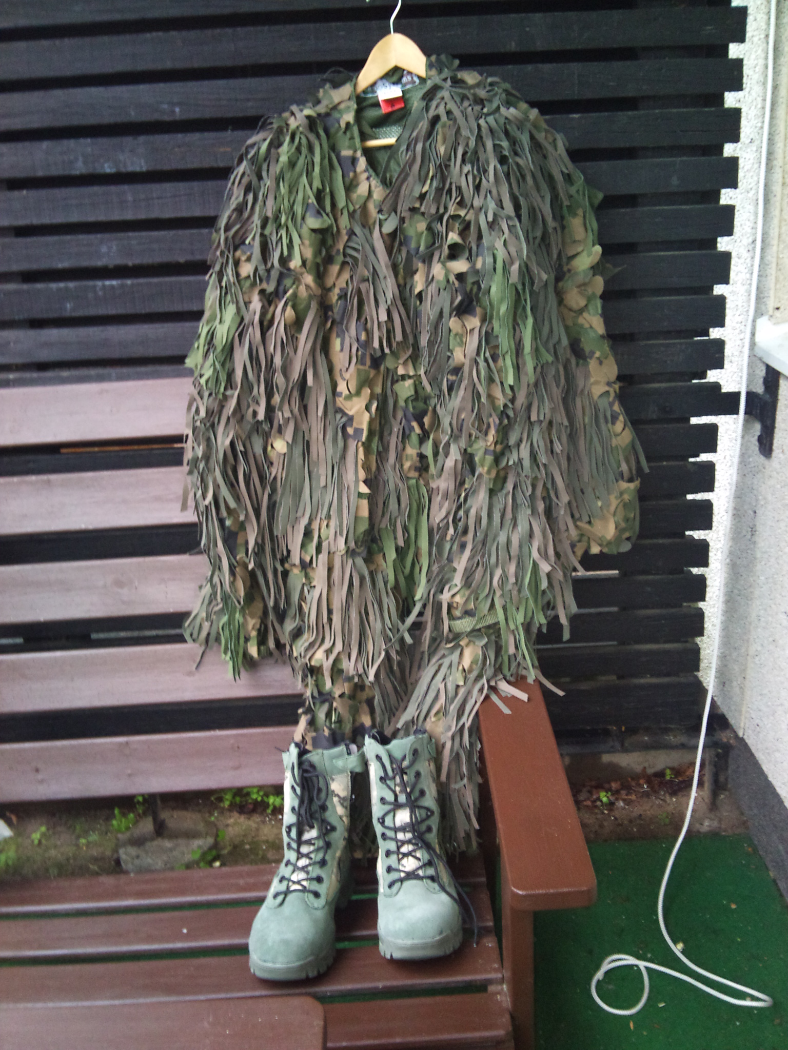 Publicerat Juni 17, 201114 yr Fick hem min ghillie suit o kan bara konstatera att det var en mycket trevlig sak som kommer o göra nytta på lockjakten o nu ska den bara prepareras med en lukt borrtagare som jag kokar i hop skälv. Gör så här plocka i hop gran.björk.löv. o annat material som är i den omgivningen ni jagar i o fyll en stor gryta den ska va proppfull med material fyll på med vatten sen bara koka upp o vrid ner värmen o låt sjuda en 15-20 min låt kallna o sen silar ni vattnet i en pumpflaska sen dom kläderna som ska prepareras före jakt häng ut o lägg två lager o låt torka i mellan sen när ni är på jakt så spreja på kläderna innan ni går ut på pass. Mvh.