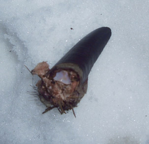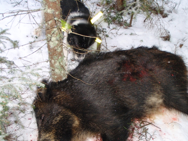 Publicerat Juli 9, 201114 yr Författare Äh.. verkar som många har semester. Så jag drar väl lite svar. Den här bilden är en spene från en spendragen sugga full med mjölk. en tragisk felskjutning på åtel.. där kulan skadat framben och rivit av spenen och även skadat ena bakbenet lite. Knappast ren bredsida... skytten förtvivlad.. Klassikt grishår, enda klövviltet där toppen ofta är kluven. Går att skönja att det är brunrött o då kan man nog gissa på årsgris Detta är ena framklöven från en gris, extremt lågt åteskott, sköts på stånd 3 km från skottplats Detta är alltså en skottplats där jag själv sköt en nasse, avstånd 10m , 30-06 o oryxkula. Tog med denna bild för att visa hur lite en gris kan lämna efter sig på en skottplatts, trotts bra träff och genomslag. Hade det varit barmark och kanske en ensam åteljägare utan hund så vore det väldigt lätt att avskriva det som bom och åka hem o lägga sig.. Nu låg där några hårstrå men ofta hittar man inte ens det. Kulan tog i bogen och gick ut i mellangärdet. Första grisen för den karelarn har jag för mig.