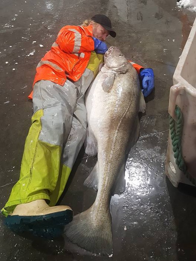 Publicerat April 9, 20188 yr https://www.nrk.no/finnmark/verdensrekordtorsken-blir-fransk-middag-1.13994150 Torsken är ju nästan lika lång som fiskaren.
