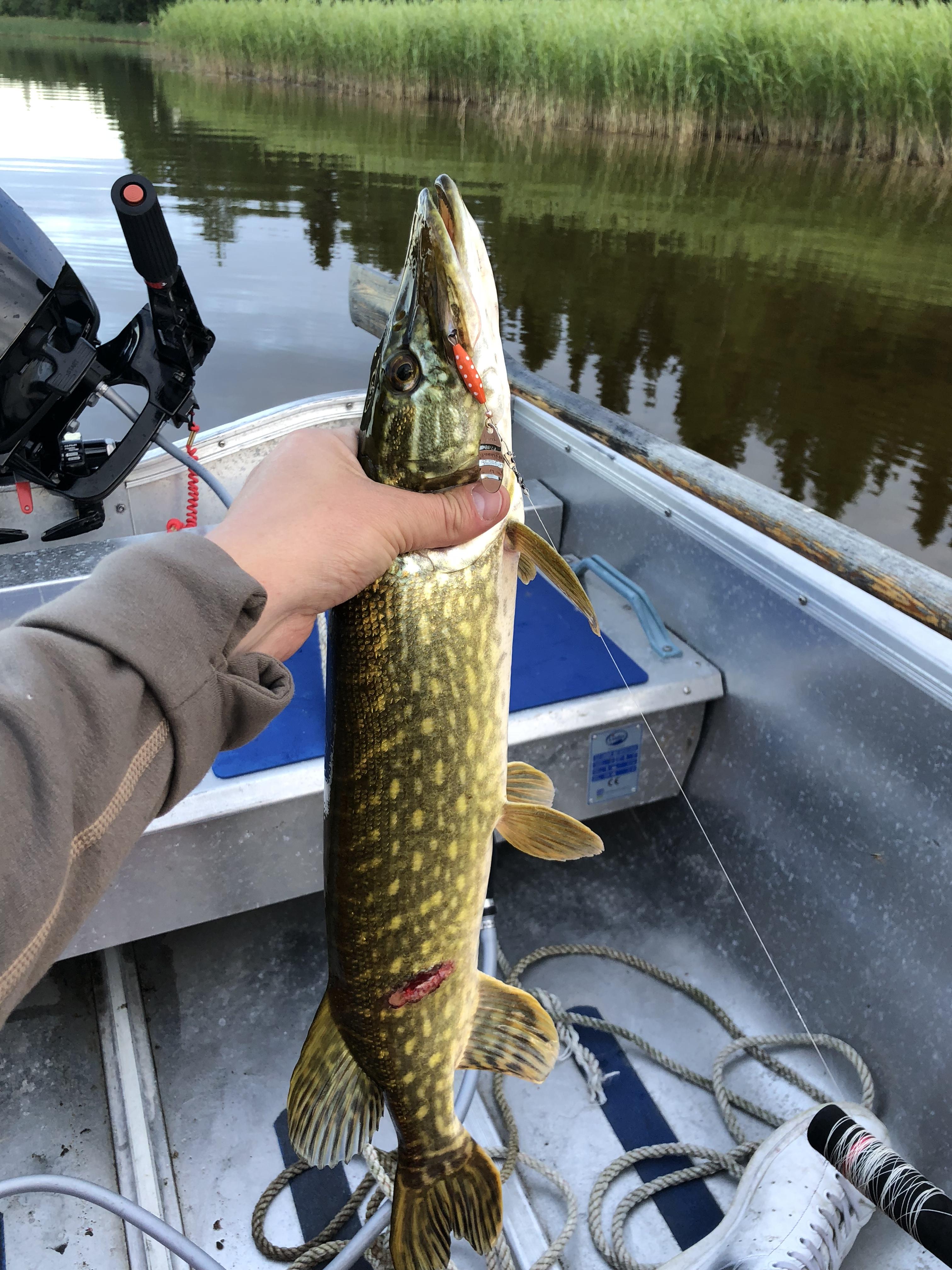 Publicerat Juli 14, 20187 yr Detta är en populär post. Jag roade mig med lite gäddfiske härom kvällen. Vad jag inte visste var att jag hade en flisa slagen ur toppringen på haspelspöet, så när jag på tredje kastet fick napp skars linan prompt av. Turligt nog har jag en flytande lina (Spiderwire) så jag kunde ro ikapp linan och landa gäddan på något udda sätt: Med linan lindad runt handtaget på spöet!