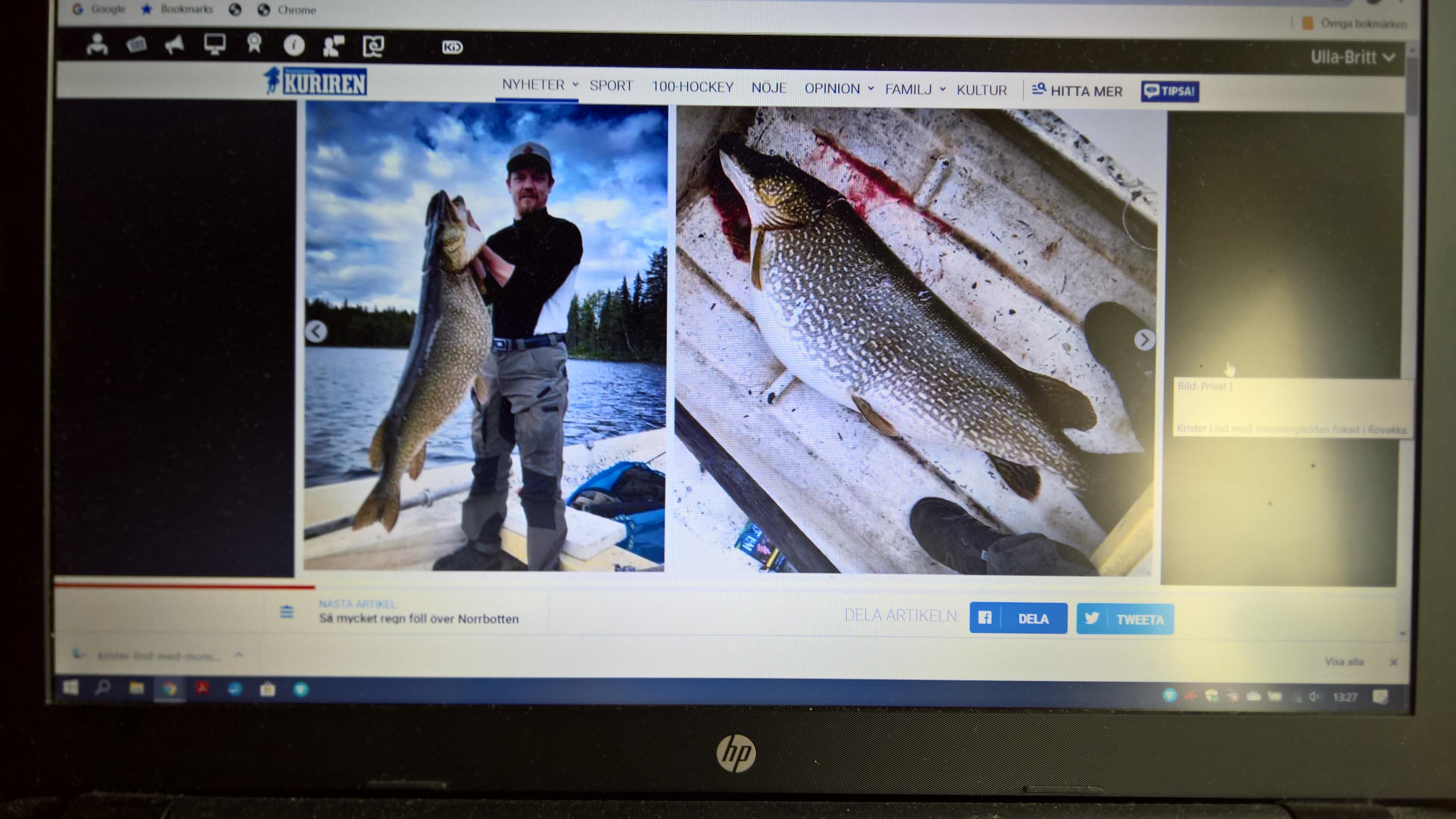 Publicerat Juni 23, 20196 yr 19,54 kilos monster fångat i Rovakkajärvi ÖVERTORNEÅ Han var ute för att fiska regnbåge och öring på midsommardagen. Då överraskades Krister Lind av en riktig monstergädda. "Den var sjukt fet" Jonathan Bergström11:32 | 2019-06-23 Krister Lind ifrån Luleå firade midsommar uppe i stugan i byn Rovakka i Övertorneå kommun. På midsommardagen passade han på att fiska i sjön. – Det är en insjö där dom har planterat regnbåge och öring sen så länge jag kan minnas, säger Lind. Men det blev inte mycket napp med flugfiskespöet. Då han såg något stor krusa på ytan. Han ror sakta in med båten och gör ett par kast med spöet. Efter att par små utfall från gädda hugger det plötsligt till. Artikelbild BILD: Privat | Krister Lind med monstergäddan fiskad i Rovakka. – Men den tog i ryggfenan, säger Lind och skrattar. – Jag hade ju bara flugefiskespöet för småfiskar. Han lyckas få in den till båten och försöker få upp den. – Till slut tar jag lillhåven och lyckas trä den över huvudet, sen får jag göra som ett brottarkast för att få upp den i båten. Artikelbild BILD: Privat | Monstergäddan fiskad i Rovakka, 19,5 kilo och 113 centimeter. Fisken är egentligen inte särskilt lång men magen är av bibliska proportioner. – Jag var ju dum som inte mätte omkretsen, säger Lind – Den var sjukt fet. Fisken vägde 19,54 kilo. Inte långt ifrån det svenska rekordet på 21,07 kilo. Artikeln kopierad från dagens Norrbottens-Kuriens webupplaga. Det är bara att lyfta på smäcken o gratulera fiskaren!