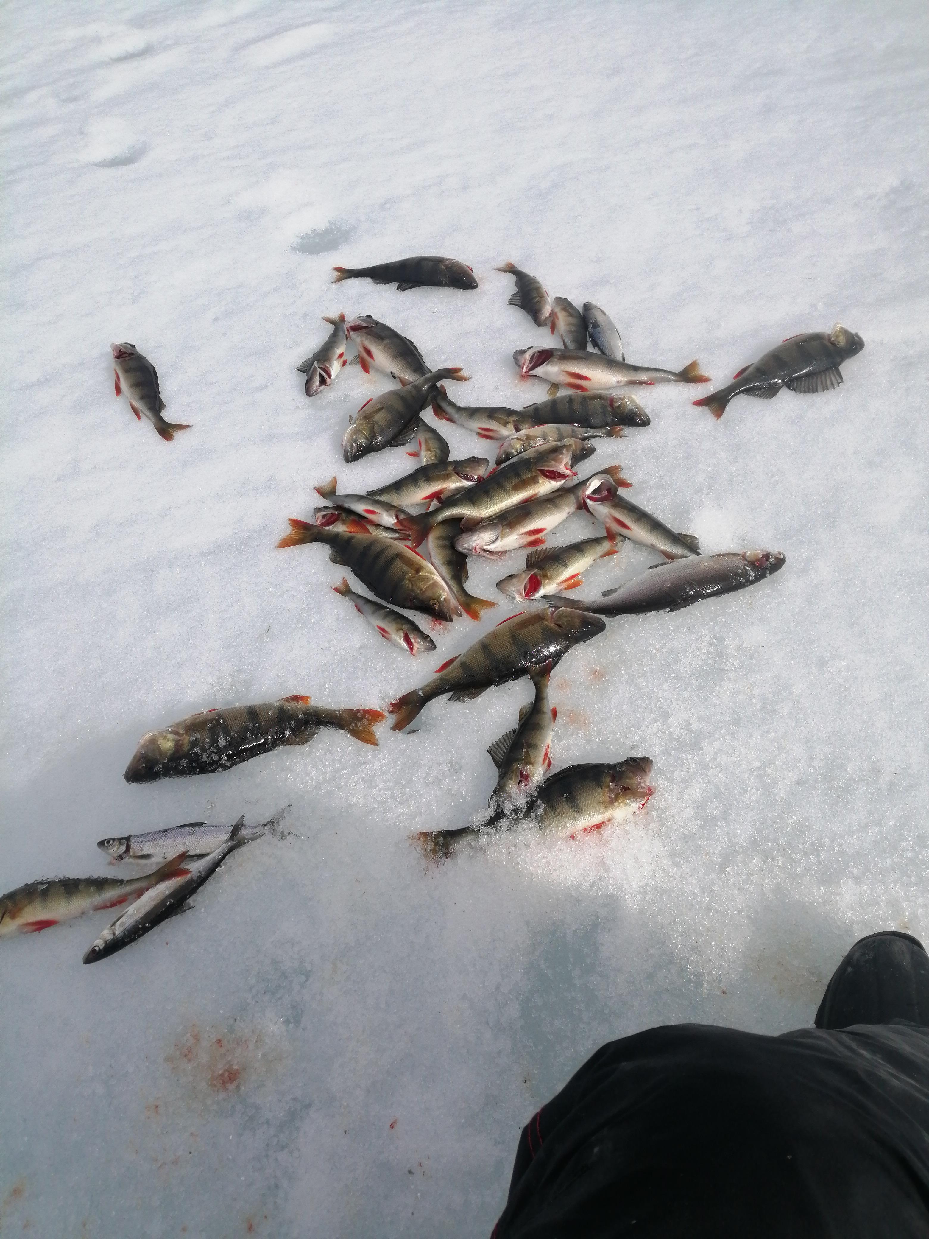 Publicerat April 26, 20206 yr Detta är en populär post. Helt galet med abborre och småsik. Tog minst tjugo abborrar från hektot till kilot på femton minuter. Sedan började småsiken nappa och inom en timme hade jag tagit femton sikar från knappa hektot till halvkilot. Men de jäklarna kan göra en galen med att bara knuffa mormyshkan framför sig. Av hundra mothugg kanske tre fastnar och jag har träningsvärk i handleden av allt ryckande. En bild tagen en liten stund efter att vansinnet startade.