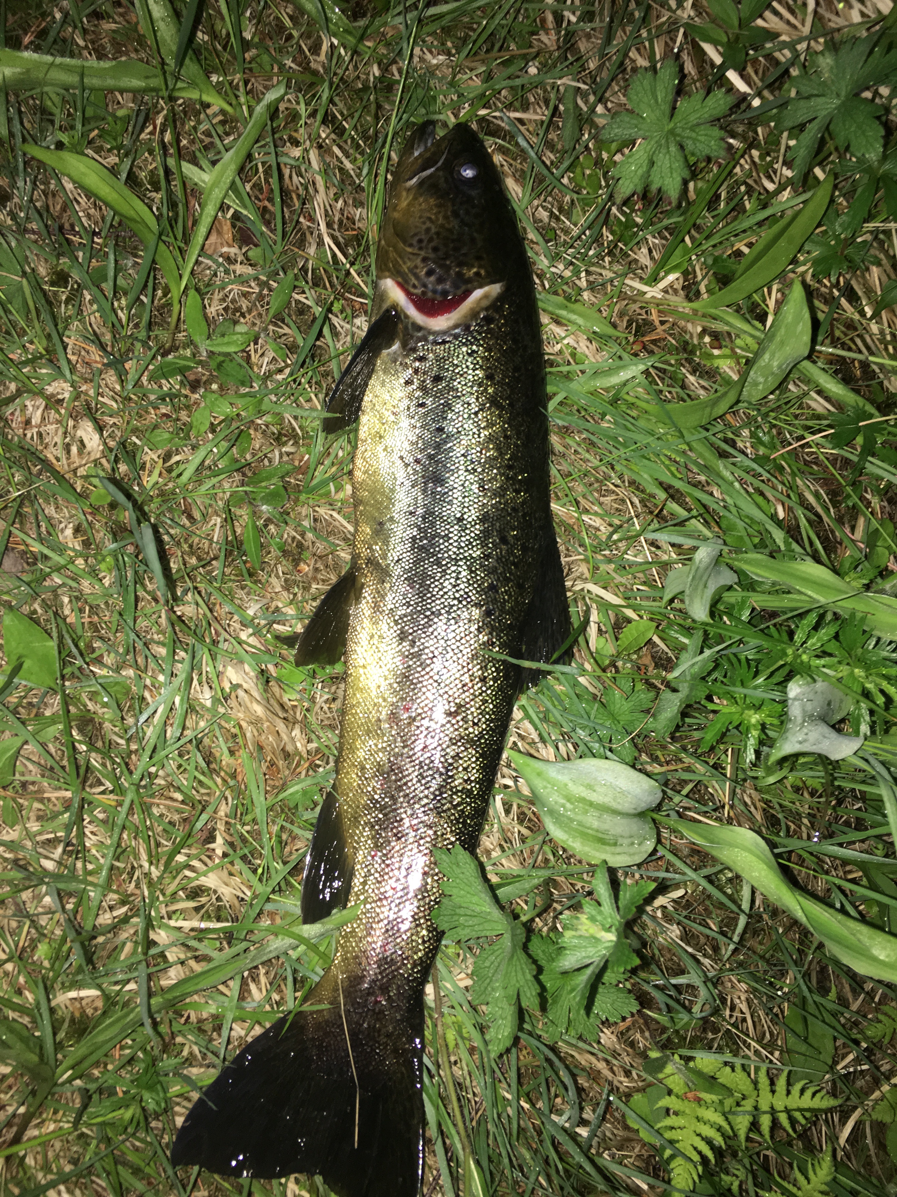Publicerat Juni 21, 20169 yr Detta är en populär post. Fyra kast med den nya skapelsen i rejält högvatten. En öring av stationär variant som jag bara fått tre av sedan jag började fiska Ängesån för sju år sedan och en sexkilos lax som är filead och skuren i matbitar för transport söderöver.