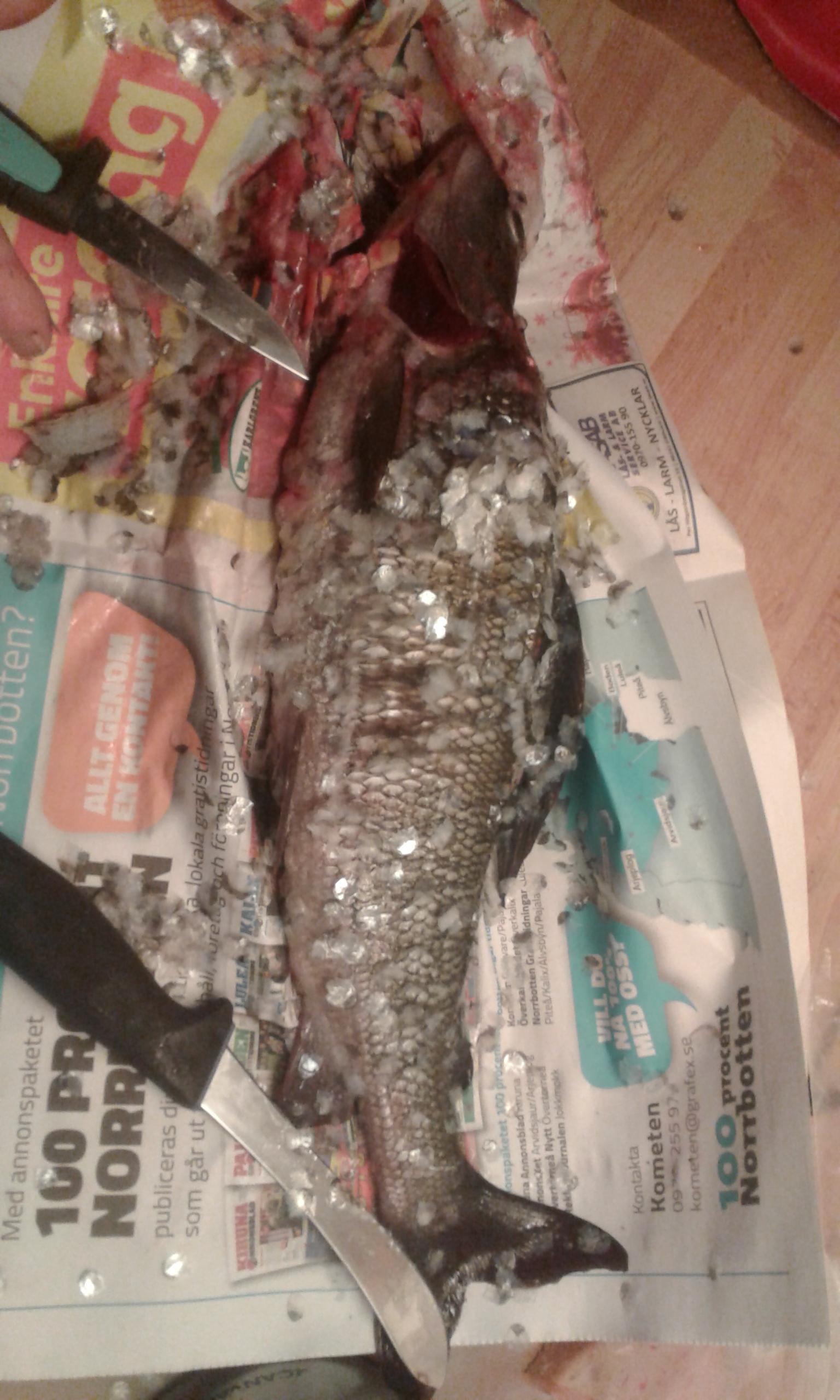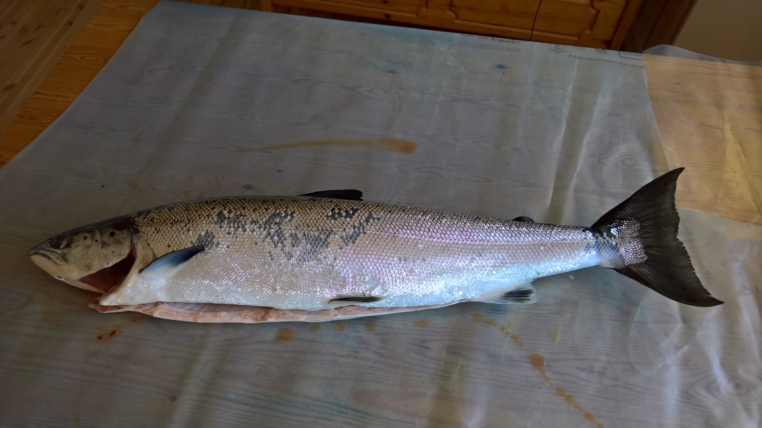 Publicerat Juni 4, 20178 yr Min snälla flugfiskande granne kom med den här fina laxen till mig idag på fm. Vikt ca 7 kg orensad. Fångad vid Jokkfall, Kalix älv. Nu ligger den i frysen i lagom stora middagsbitar, filéead o vakkumpackad.