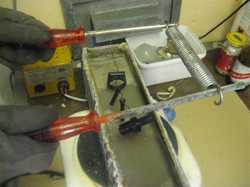 Publicerat Februari 3, 201214 yr Författare Om inte annat får du en bra lektion i matningsbesvär Kanske det men å andra sidan ser jag inte det som nått negativt. Idag hände det inte så mycket, fick svarvat 3 uppsättningar av pelare. Övrig tid gick åt att snacka i telefon och svara på email samt pm. En bit 6061 alu fanns i lådan och den åkte raka vägen upp i svarven. Man ser hur stort hål det är lämnat för pelare i mcm-kolven. Pelarna som åkte med var lite väl små då jag vill ha limmat dom först innan plastbädningen. Nya pelare passar bättre för min metod. I helgen blir nog inte mycket gjort då jag måste ägna uppmärksamheten åt andra håll med.
