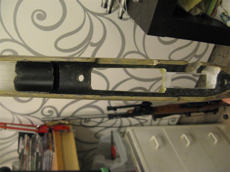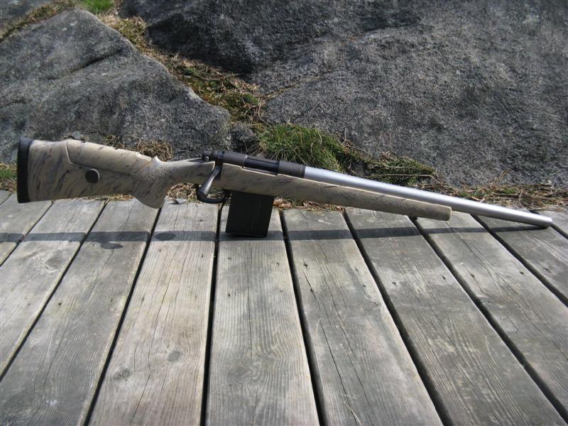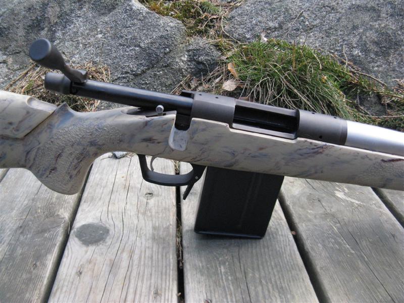 Publicerat April 5, 201214 yr Författare Ja då var det dags för en sista uppdatering från min sida... Resten är upp till Chris som nu tålmodigt väntat riktigt länge på att få tillbaks sin bössa. Det är några detaljer som jag inte varit helt nöjd med och som jag i normala fall inte hade släppt ifrån mig men som jag nämnt för Chris så vill vi (antagligen) bägge få ett avslut på denna vändan. Har uppmanat Chris att kritisera bygget noggrant och återkomma med eventuella reklamationer till sommaren så skall jag fixa det som fixas bör. Känner starkt att även då det är dålig reklam att inte lämna ifrån sig ett perfekt resultat så tror jag fullt ut på att ärlighet varar längst i såna här fall. Nå... Det låter som om jag sågat bössan totalt men det har jag inte. Faktum är att jag gladeligen skulle ha ägt den själv då den blev mycket trevlig bortsett från några porer som uppstod vid svetsningen av bultknoppen. Remmys handtag är antingen pressat/sintrat mög alt så är det gjutet. Har vid de flesta fall funnit inneboende håligheter/porer i handtagen när jag gängat för taktiskt bolt knob. Detta kan vara en av orsakerna till att porerna som uppstod sen kan det vara det faktum att jag slarvat vid avfettningen. Ja ja... Das was det och nu till lite bilder på bygget i sig. Var uppe i Skövde och sköt med Christer, passade på att sno hans jigg för stiftning av klack. Men så vill man ha den åt rätt håll varje gång det byts pipa så därför.... En bolt knob tillverkas av en bit ämne, bommade kort på finputsningen samt svetsningen. Men så här blev det, ni ser även en pora samt fenomenet som uppstår om man inte lyckas matcha med rätt tillsatsmaterial. Det lustiga är att det borde vara rätt iom att knoppen är gjord av 1312 och tillsatsmaterialet är Böhlers EMK-6. Sen bäddades byssen såklart, pipan har ingen kontakt med bäddningen då jag hade flertalet lager med tejp runt. Och så skruvar vi ihop alles och då blir det så här: Sen fick jag ta ur lite där i slutstyckes urtaget på stocken för den tog minsann emot ganska rejält. Och så var det lite bilder på utfyllnaden av hålrummet runt underbeslaget. Det är inte jättelätt att matcha färger kan jag lova men jag har gjort så gott jag kunnat iaf. Sen så var det ju bara gravering av kaliberförteckning samt tillverkningsnummer kvar. SE-märkningen graverade jag på undersidan av pipan för att inte klottra för mycket på pipan. Det som gjordes mer var att få dämpgängan att lira med dämparen vilket den inte gjorde. Fick på dämpet ett halvt varv men nu så funkar det som det skall. Det var allt för stunden... Nu bär det av in till postkontoret och sen håller vi tummarna på att dom levererar allt till rätt destination.