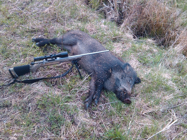 Publicerat Maj 4, 201213 yr Bockjakt blev grisjakt... Var ut till kollegan i morse för att kolla efter en majbock. När vi kom fram till vår tänkta pass-plats, så stod det en gris och mumsade i en hög med havre. Vi visste att det är gris där varje natt, men att de skulle vara kvar när det är dagsljus var lite av en överraskning.. När denna låg pladask i havren (Bal Tip 150 gr 308 win...), kom det fram två till Siktade på den ena men avstod... Så kan det gå! mvh/Må