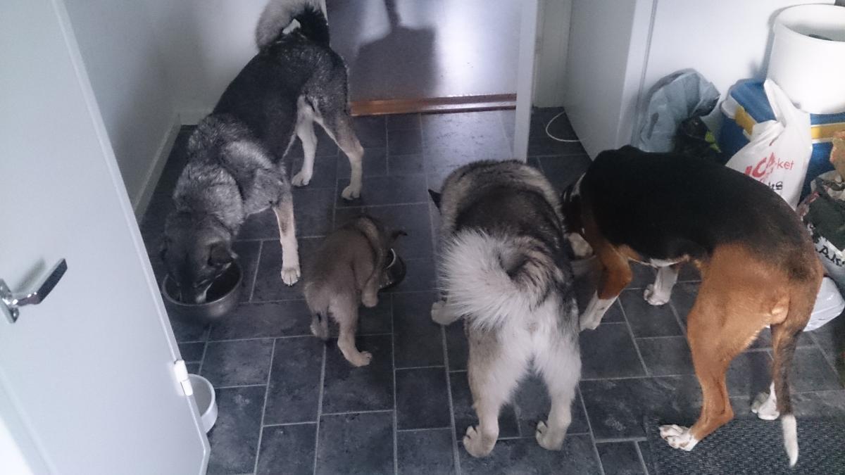 Vad är det för ras? Jag kan bara se en stövare, en älghund och en jämte.....;)