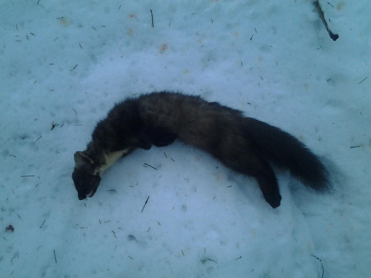 Publicerat Februari 24, 201313 yr Var ute med min hemgjorda Trapper 90-låda igår vid en välanvänd mårdväxel. Kollade fällorna idag och för skojs skull även denna i hopp om fler spår, men det visade sig att det redan var fångst i fällan som suttit i mindre än ett dygn. Det var en fin hanne på 1,4 kg med en något udda tass, nämligen en med 6 tår och även ett bettfel visade sig detta djur ha. MVH