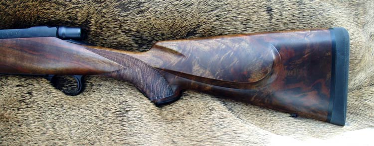 Publicerat Oktober 10, 200718 yr Här är ett exempel på hur en deluxe Classic kan se ut. Hur kommer vi då in på frågan om kindstödets utformning? Jag väntar fortfarande på konkret kritik på kindstödets utformning ??? Mickes inpass om kindstöd med rollover tar jag inte på allvar utan plaserar det i samma klass som förslag om vita effektränder eller utsnidade vildsvin på kolven. Om jag hade föreslagit rolloverkindstöd till Leif hade jag omedelbart fått se mig om efter en ny smed :-*. Eftersom kindstödet i princip inte har nån praktisk betydelse utan bara är att se som utsmyckning är det så klart fritt fram för envar att utforma det efter tycke och smak. Precis som du skriver så har kindstödet ingen större praktisk betydelse och därför blir det svårt att få till någon diskusion som handlar om något annat än personliga preferenser avseende skönhet. För egen del tycker jag små njurformade kindstöd är rent fula,bilderna jag nu lägger in är betydligt snyggare i mina ögon,här fyller kindstödet sin funktion då kolvkammen kan göras högre med rollovern,betydligt snyggare än Monte Carlo. Hög kolvkam är väl mest ivägen om man vill ha öppna riktmedel på,vilket du inte har. Snyggast är dock bilden du lagt ut på Sakon utan kindstöd. /Micke