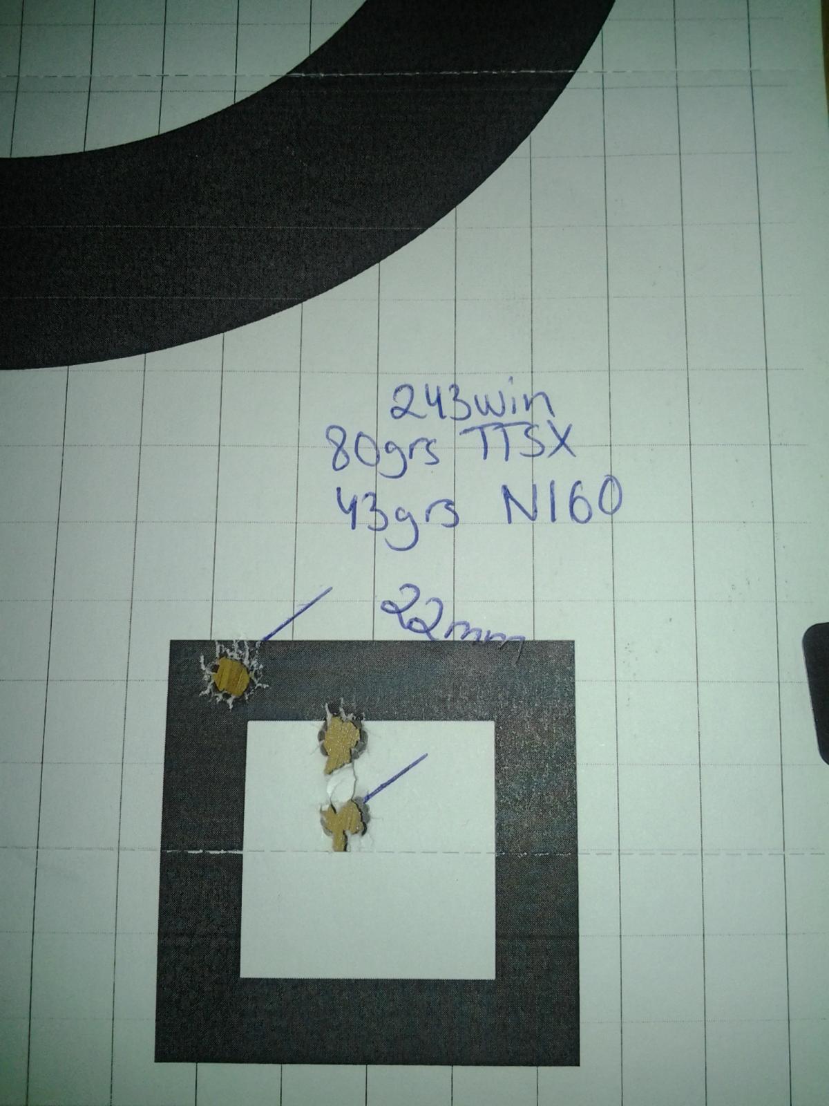 Ska öka på den laddningen med 0,5grs och ta andra hylsor än de gamla Normahylsorna som jag laddade dom i. Winchesterhylsorna med TTSX kulorna i sotade inte ett skit.