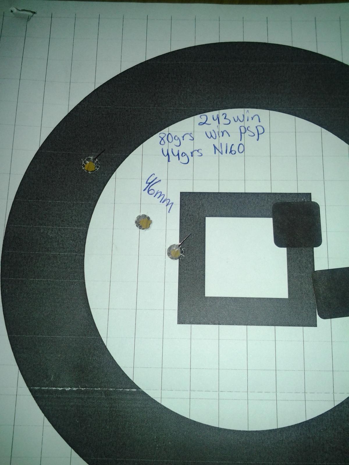 Nu har jag dock kommit till insikt med att den jakten jag bedriver där räcker det om Ruger 308an presterar 35-40mm som max och 243an vill jag ha runt eller under 25mm på grund av att jag vill kunna dryga ut hållen lite (250-300m).