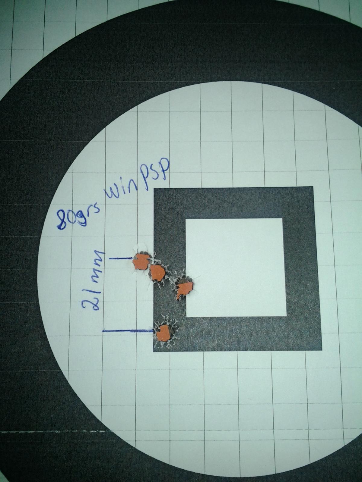 Ptja, första serien såg ut såhär med 80grs Winchester (tilltänkta övningskulan):