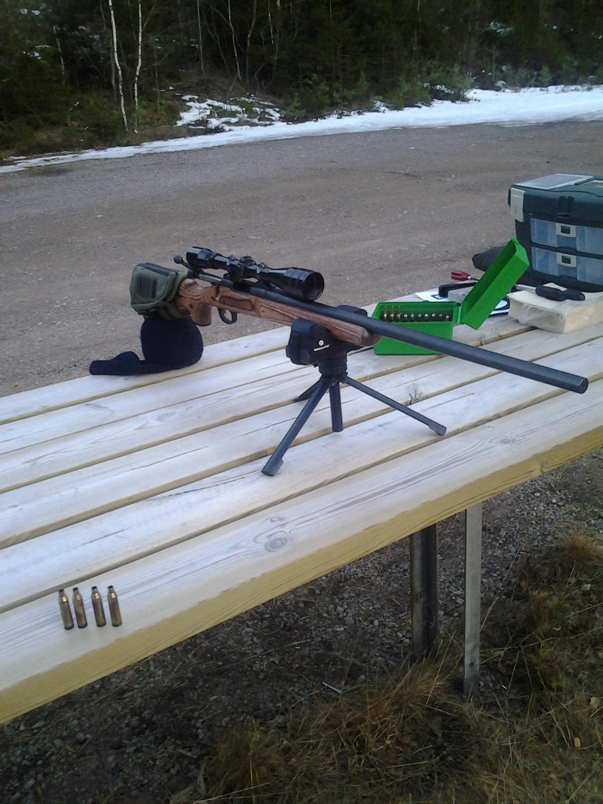 Tjena grabbar nu har jag provat min vls och är duktigt nöjd. Fick lirka lite med den i början då den inte riktigt ville hålla ihop, men efter ca 20 skott börjde den förstå att det va jag som bestämde. sköt 3st träffbilder på 15- 16 mm så nu är det bara att ladda. Tänkte köra med 168grains hornady match på bana och 168 Amax till den jakt som kommer att bedrivas
