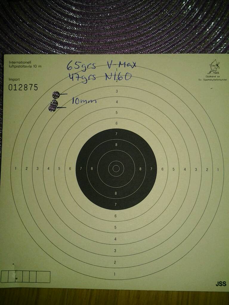 Vad som sedan kommer laddas till övningsskytte av 65grs eller 75grs V-max det återstår att se.