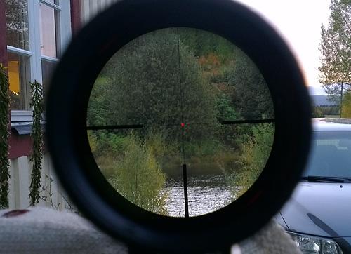 Publicerat Januari 25, 201313 yr Stämmer nog att Helia CSX inte kommer upp i riktigt samma intensitet som HT och Z6i. Under barmarksäsong har jag dock aldrig upplevt CSX vara för klen. Däremot förra helgen under en fin vinterdag med fullt snötäcke + rimfrost i träden...kändes rödpunkten aningen klen...men inga problem att se den ändå Här en bild på min CSX 1,1-4x24 P-dot @1,1x nu under vintern på ungefär 2/3-dels dagljusläge... ...och här en på min CSX 3-12x56 4-dot @6x under barmarksäsong (mulen dag) på ung 1/3-dels dagljusläge...