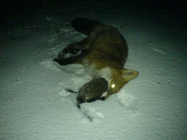 Publicerat November 8, 200619 yr Nu har Roger kommit igång, två rävar från fågeltornet har det blivit, på två pass. Själv har jag varit ut några gånger utan att se något. Ni som var med på klappjakten här i lördags vet säkert var, just det... på isen utanför lodjurs marken :- Detta är den andra räven och som ni ser har den maten i munnen i form av en bisamråtta. Snacka om en sista måltid Obs.. Mobilkamera bild