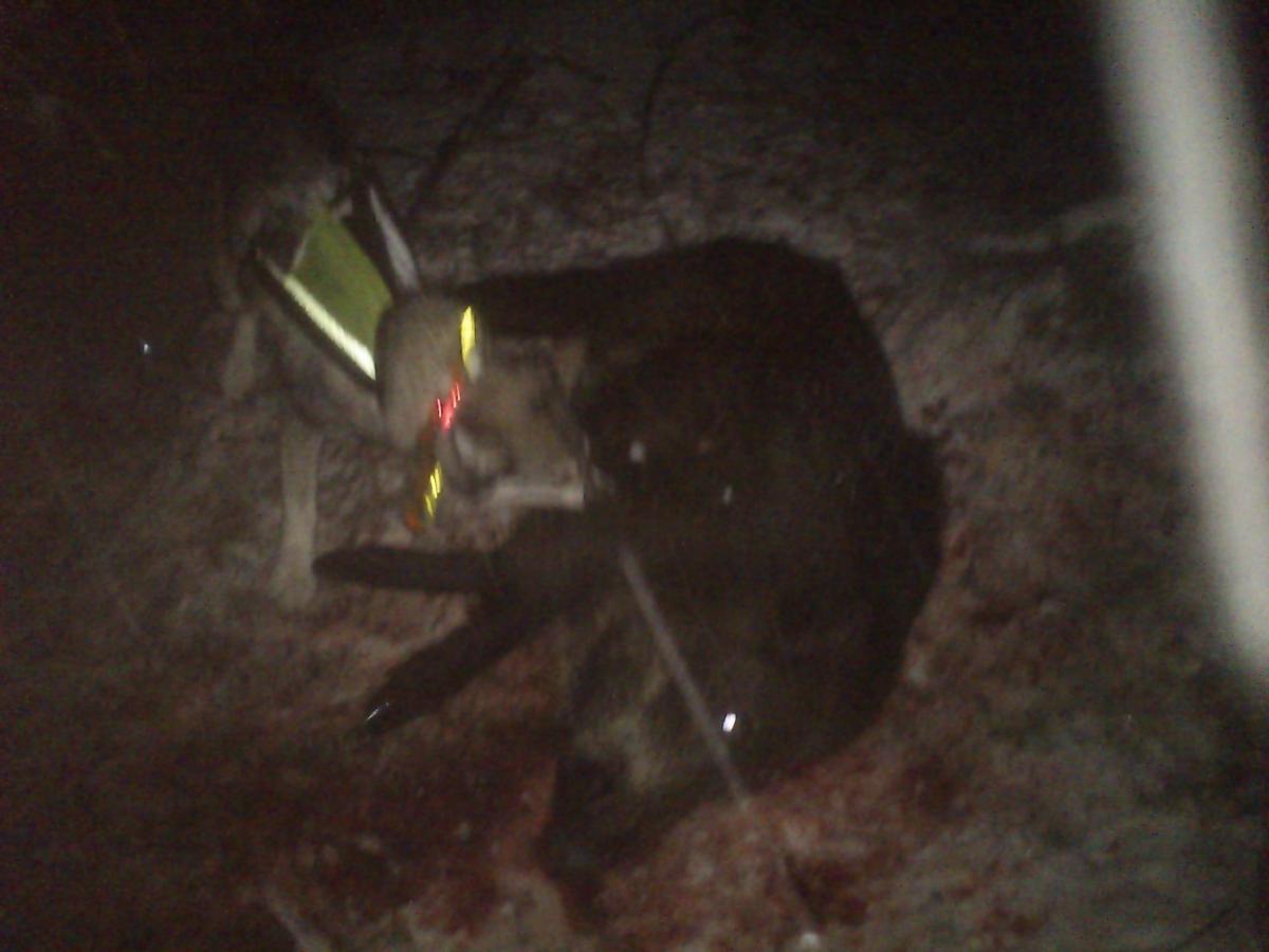 Publicerat Januari 28, 201313 yr Kopierar lite från dagboken. Vi hade en påskjuten gris i första såten som gick ut med en laikahane efter sig. Det strulade till sig när det gick in i en flock grisar så där bröt de. efter fikat så handspårade de ut den och släppte på en laikatik men hon sprang rakt på en frisk gris och drog iväg. Då försökte de med ung gråhund men precis när de släppt den så möter han laikans gris som vänt. De lyckas koppla upp och spårar vidare med laikahanen och efter en stund springer det upp en gris bara 5m framför dem och de släppte i tron att det var rätt gris, men inte. De fick tillbaka hunden och spårade ut till en väg. Nu hade vi andra brutit dagens jakt efter en tom andra såt och jag och Filip och några till anslöt. Vi hade nu ett blodspår över en väg och ingen som gått i det så nu tog vi till rutinen. Spårade 50m med Lina och så släppte vi. Stopp 700m bort fast vi hörde ingenting pga vind och terräng. Filip har längre ben än jag så han fick gå på och jag följde efter. Tror han var inne på 10m när det gick loss. Uppåt länsgränsen börjar det gå långsamare. Står bara korta stunder annars gångstånd. Vi kommer ifatt det och Filip och Gunnar släpper på Gunnars laikatik också och går på. Grisen försöker då smita ut över ett hygge men då går hundarna ifatt och håller den så vi kan avfånga. Skottet satt i det som väl kan kallas handleden. Och vi avfångade den över 5km fågelvägen i från skottplatsen skulle tro den gått 7-8km. Var hemma lite efter kl.18. Hade inte ens fått av stövlarna när det ringer. Påskjuten gris i Stojby. Hinner få i mig lite mat sen åker vi. Killen hade skjutit en gris av fyra på en åker. Nästan direkt kommer de andra tre ut igen och han skjuter på en till. Grisen skriker till och ger sig iväg. Han klättrar ner och ringer sin jaktledare och när han kommer tillbaka tilll tornet så har de två sista grisarna gått ut igen. De gör en skottplatsundersökning under tiden jag kör dit. Hittar blod, en muskelbit och något litet benfragment. Sätter Lina på spåret rätt mycket blod i början syns att ett ben inte är med riktigt. Är lite nära Rottne vägen så jag spårar nog 3-400m innan jag släpper. Upptag 500m bort. Flyttar 100m sen står det fast intill en liten väg. Vi kör runt och Niklas ställer sig på vägen och jag går runt för att gå på. Men grisen hörde nog mig direkt för det börjar röra på sig. Jag tar ut svängen lite och kommer in på 15m utan att se något. Då börjar det gå ut mot vägen. Går över 20m ifrån Niklas men han kan inte skjuta pga att Lina är i röven på den. Stopp igen efter 150m men nu är allt röjt så det går inte att gå tyst. Går egentligen parallellt med gångståndet hela tiden för att hålla bort det från vägen. Blir stopp var hundrade meter men är bara en gång jag kommer så nära att jag ser grisen. Har punkten i skallen på den men Lina är för nära och sen vänder den rakt ifrån mig och skjuta rätt i röven vill jag inte. Niklas har gått runt och ställt sig i förhåll och det blir stopp precis framför honom. Nu är det is i skogen så det går att ta sig fram tyst. Kommer in på 15m och ser att hon har grisen ibland några smågranar så jag bara står och väntar på ett utfall men det blir en rusning istället så jag inte hinner med. Så bara en rörelse över luckan där jag trodde jag skulle ta den. Passerar Niklas på 40m i bra fart tror inte han såg den ens. Stopp igen andra sidan om honom så nu går jag runt och går in med vinden i ryggen istället. Är en dunge med halvstora självföryngrade granar med stora stenar och vindfällen i. Kommer in på 15m när LIna kommer ut och tittar på mig. Så går hon in och ut kommer grisen. Stannar till och jag sätter en bula mitt i grisen. Blir en rusning på 15m sen drar hon igång igen. Går in och avfångar. Hade kommit iväg 3km från skottplatsen nu. Träffen satt högt i ett framben precis under kroppen.