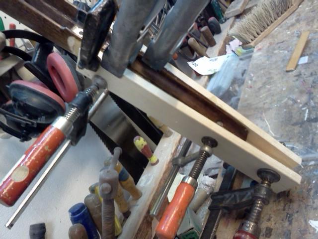 Publicerat Februari 5, 201313 yr Författare Slipat ned på sidorna för att limma på asplister. Mycket lim och många tvingar blir det. Nu är det bara att hoppas det håller ihop, det kommer att krävas en hel del spackel för att få den slutgiltiga formen, men jag räknar med att det ska funka. Går det åt helvete får jag väl köpa en stock......